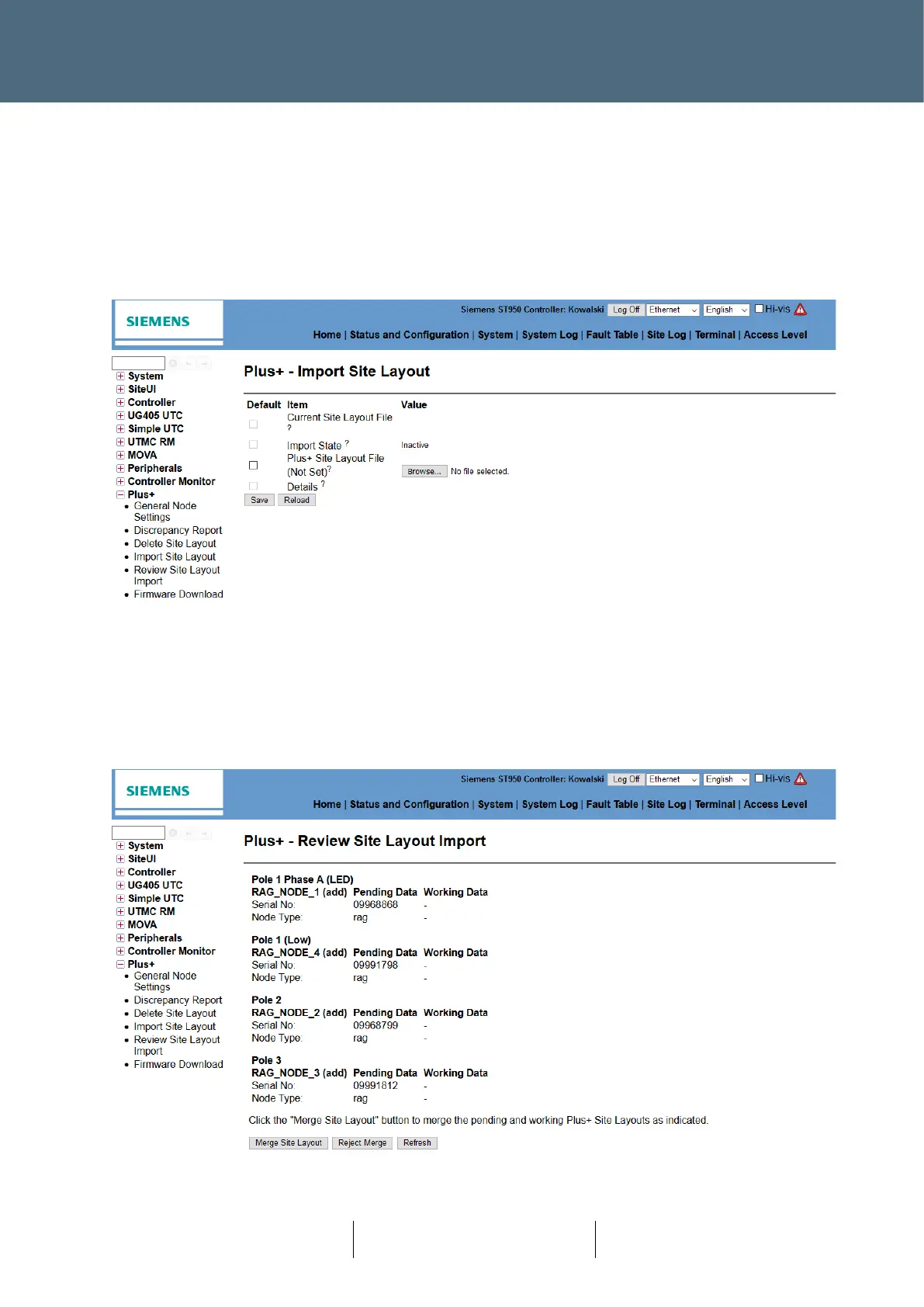 Status and Configuration → Plus+ → Review Site Layout Import web page: