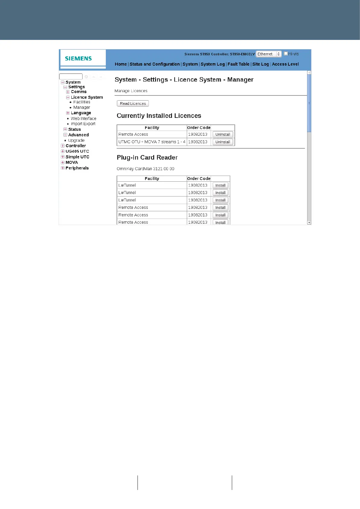 (contained in the Licence Smart Card fitted to the controller CPU Card). The example above shows