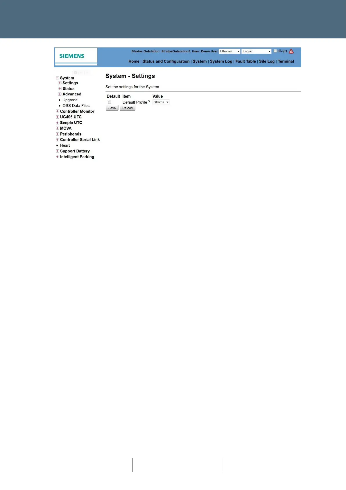 profile isn’t selected and / or the unit is connected to systems other than Stratos e.g. UTC systems)