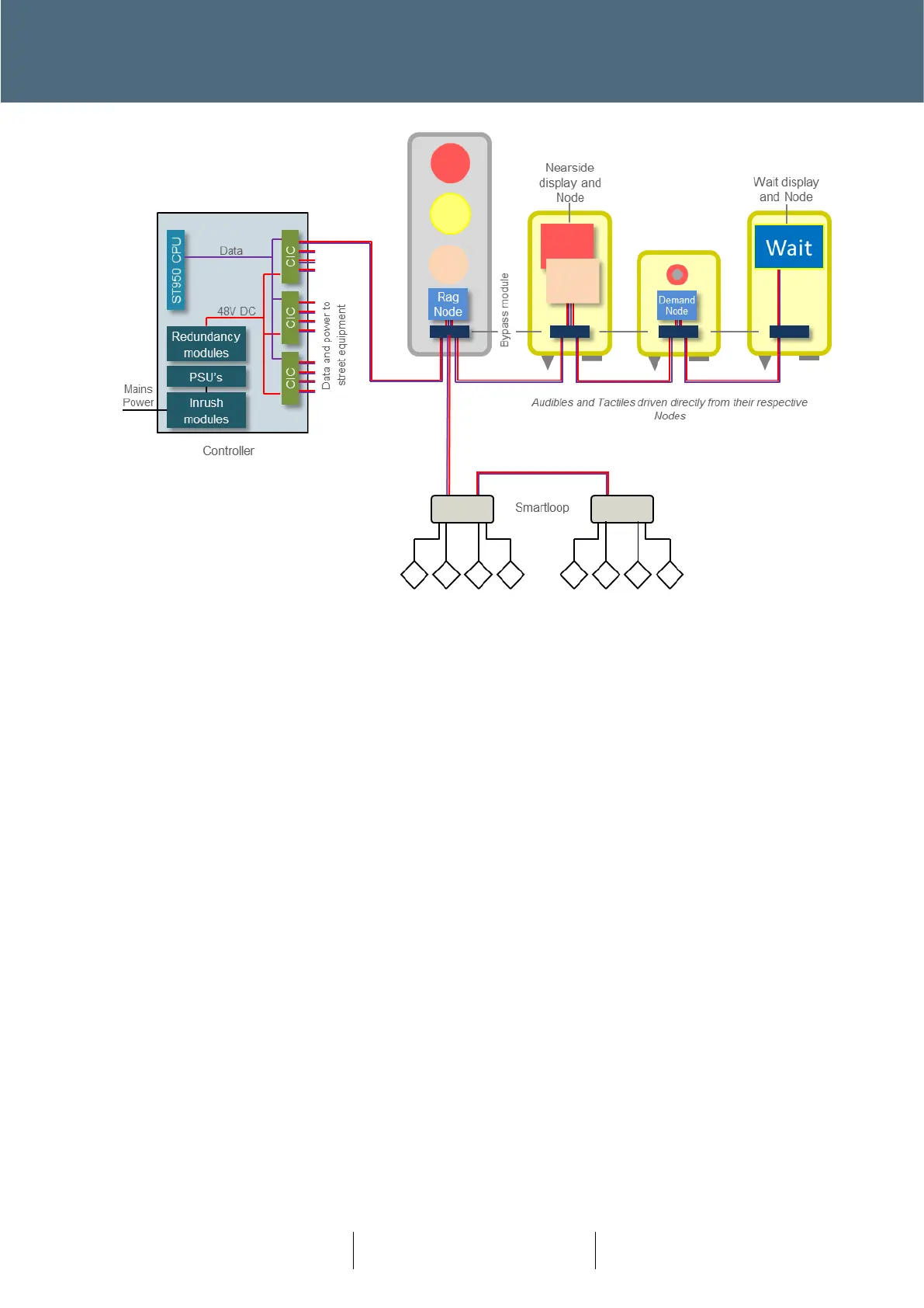 Pedestrian Signals), ‘Nearside Node’ (Nearside Display enclosure) and ‘Wait/PDU Node’ (Pedestrian
