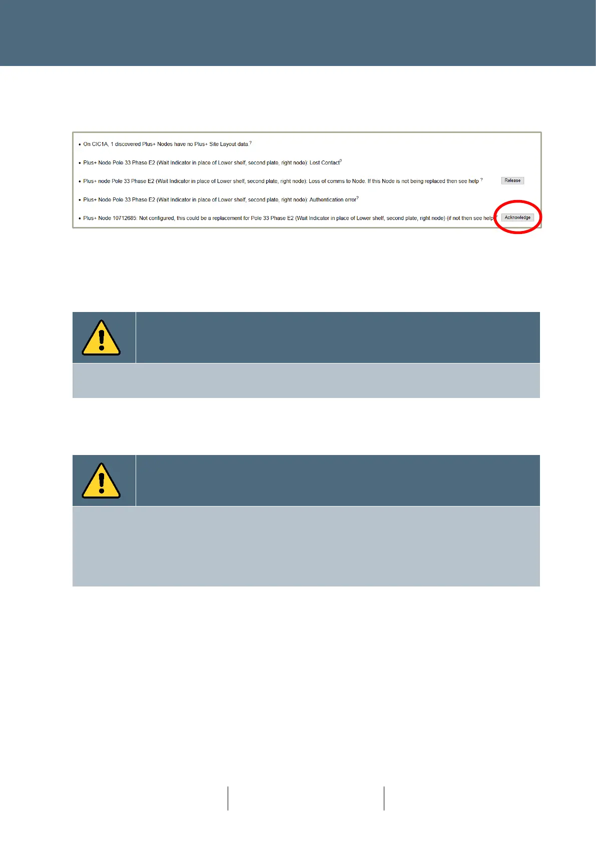 At the controller, in the Fault Table, the User is expected to ‘Acknowledge’ the change in Node