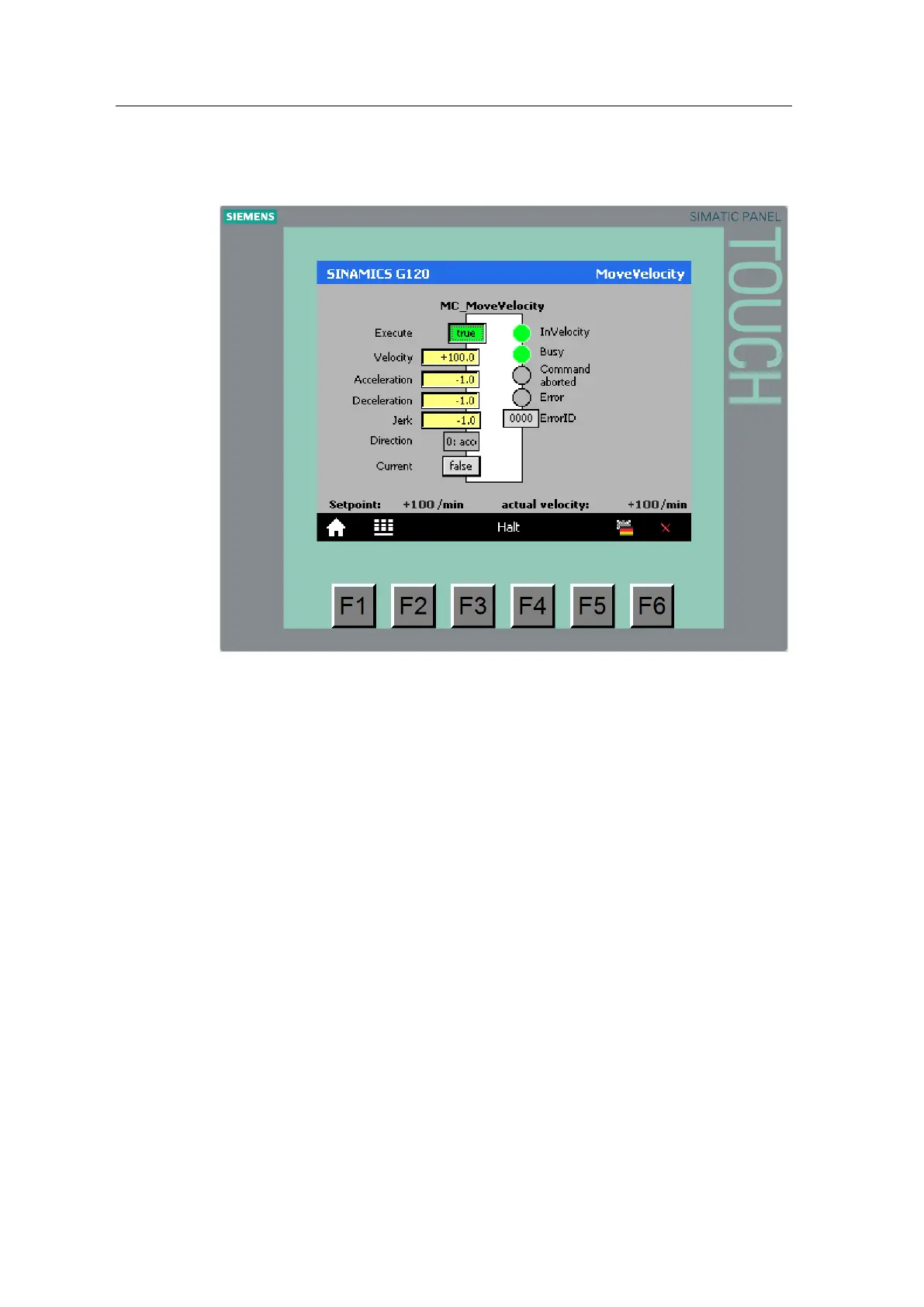 The “InVelocity”, “Busy”, “CommandAborted”, “Error” and “ErrorID” outputs allow