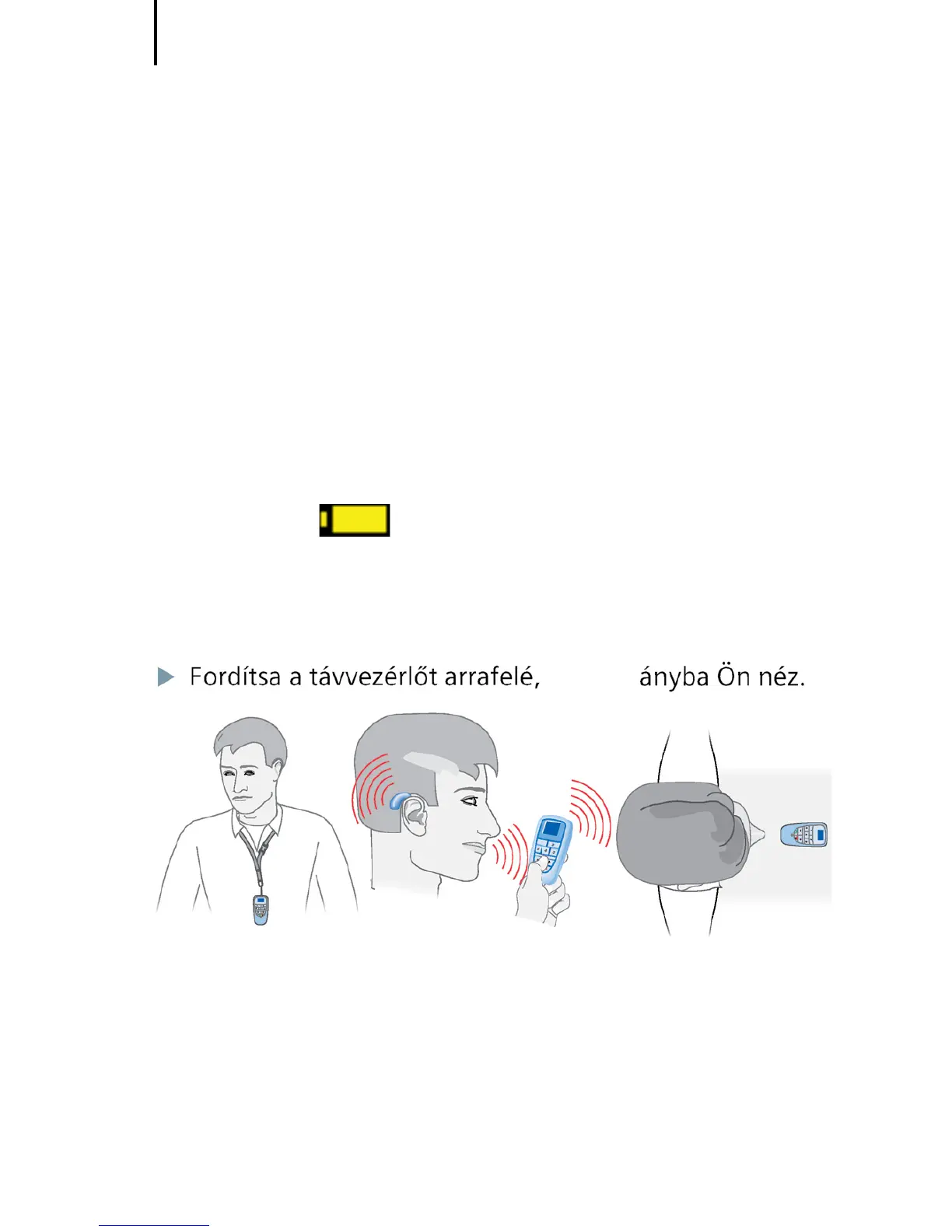 A távvezérlő a hallókészülékekhez képest 1 m-es