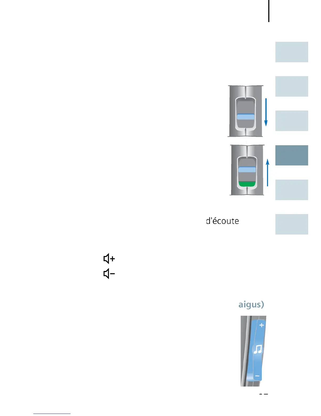 Appuyez sur + (haut) pour obtenir un son plus