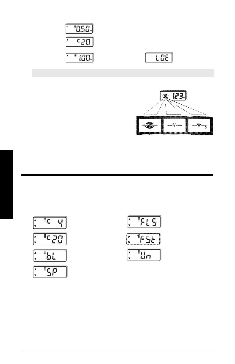 Pulsar simultáneamente las teclas "4" y "20" hasta visualizar el ajuste deseado. Se visualiza