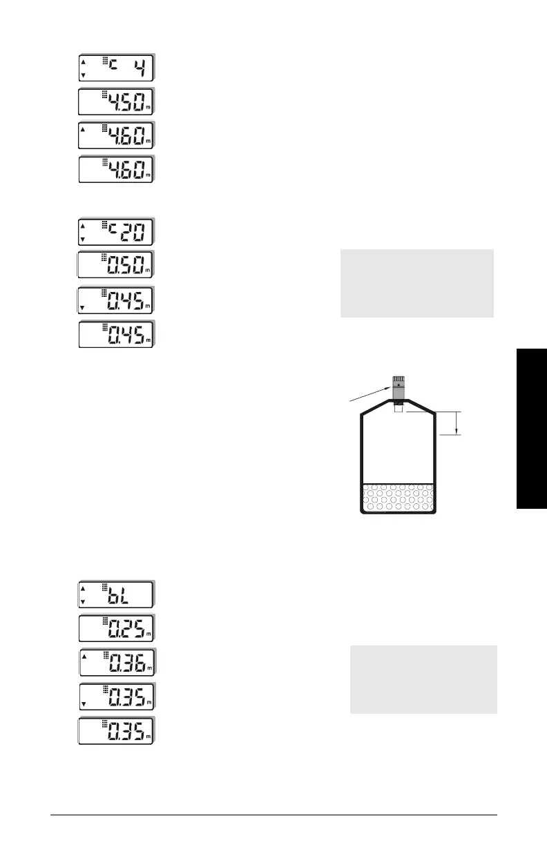 Visualizar el valor de calibración de 4 mA almacenado. Ejemplo: 4,50 m