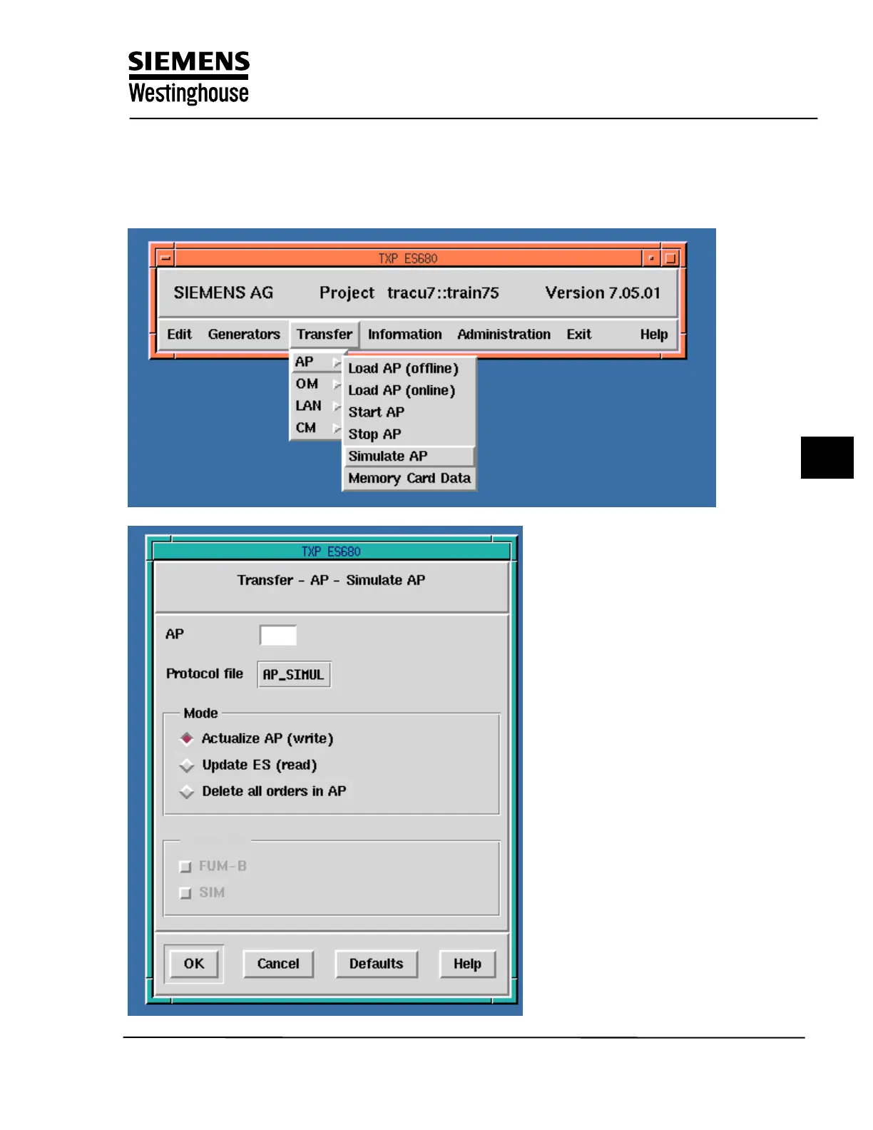 made to the AP. The transfer using “Simulate AP offers options to write to the