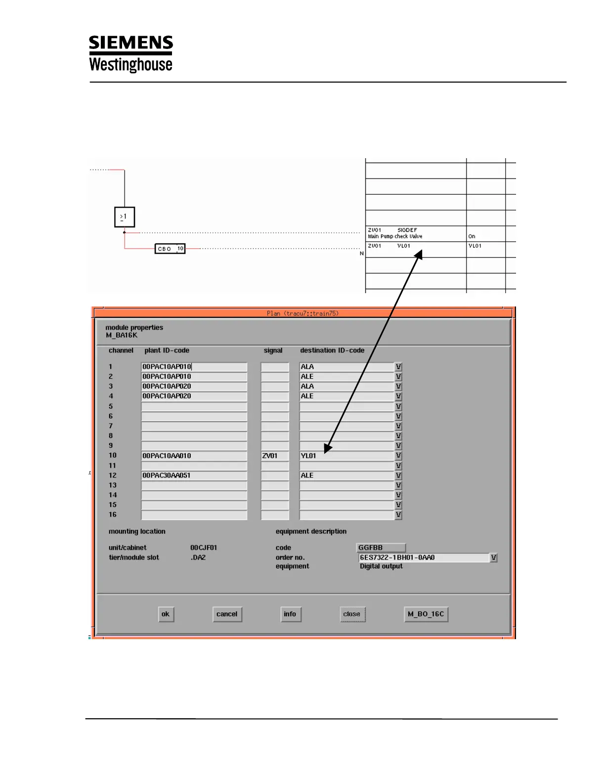 mask of the SIM binary output module on the hardware diagram (YDR).