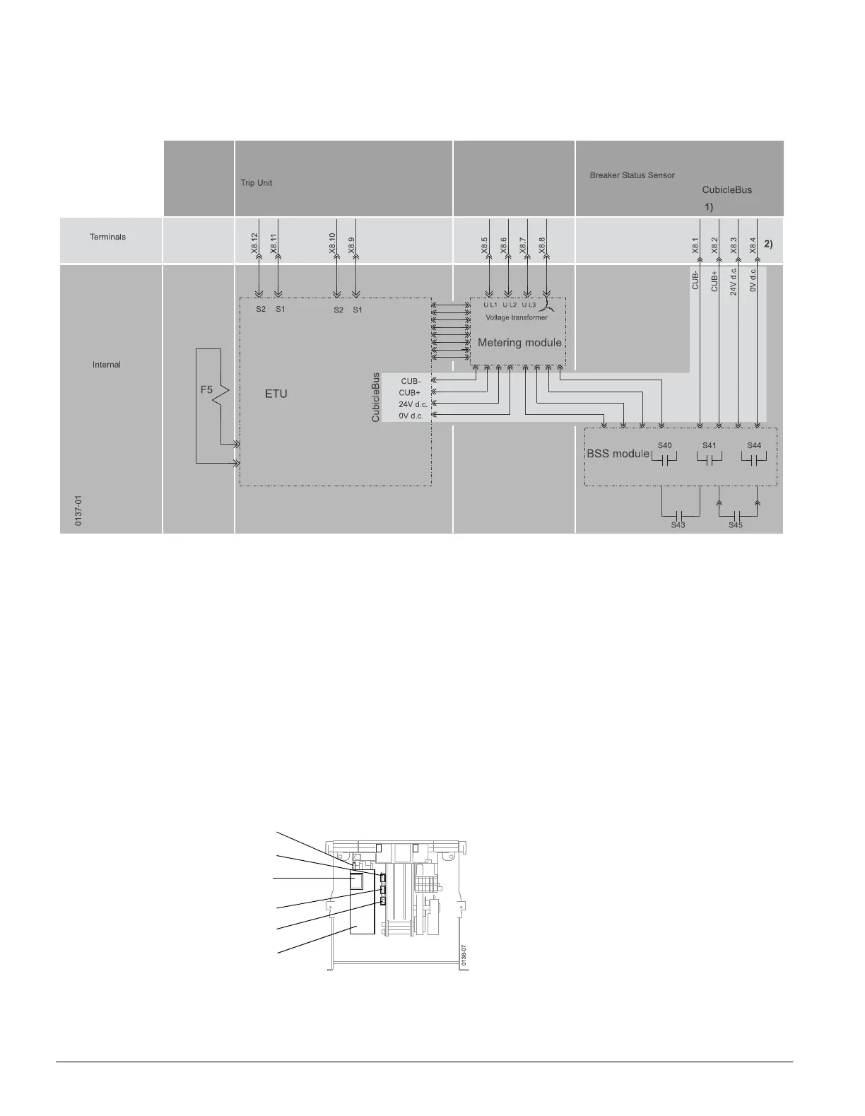 - c: Bus system for interconnection of circuit breaker components and connection to the fieldbus: