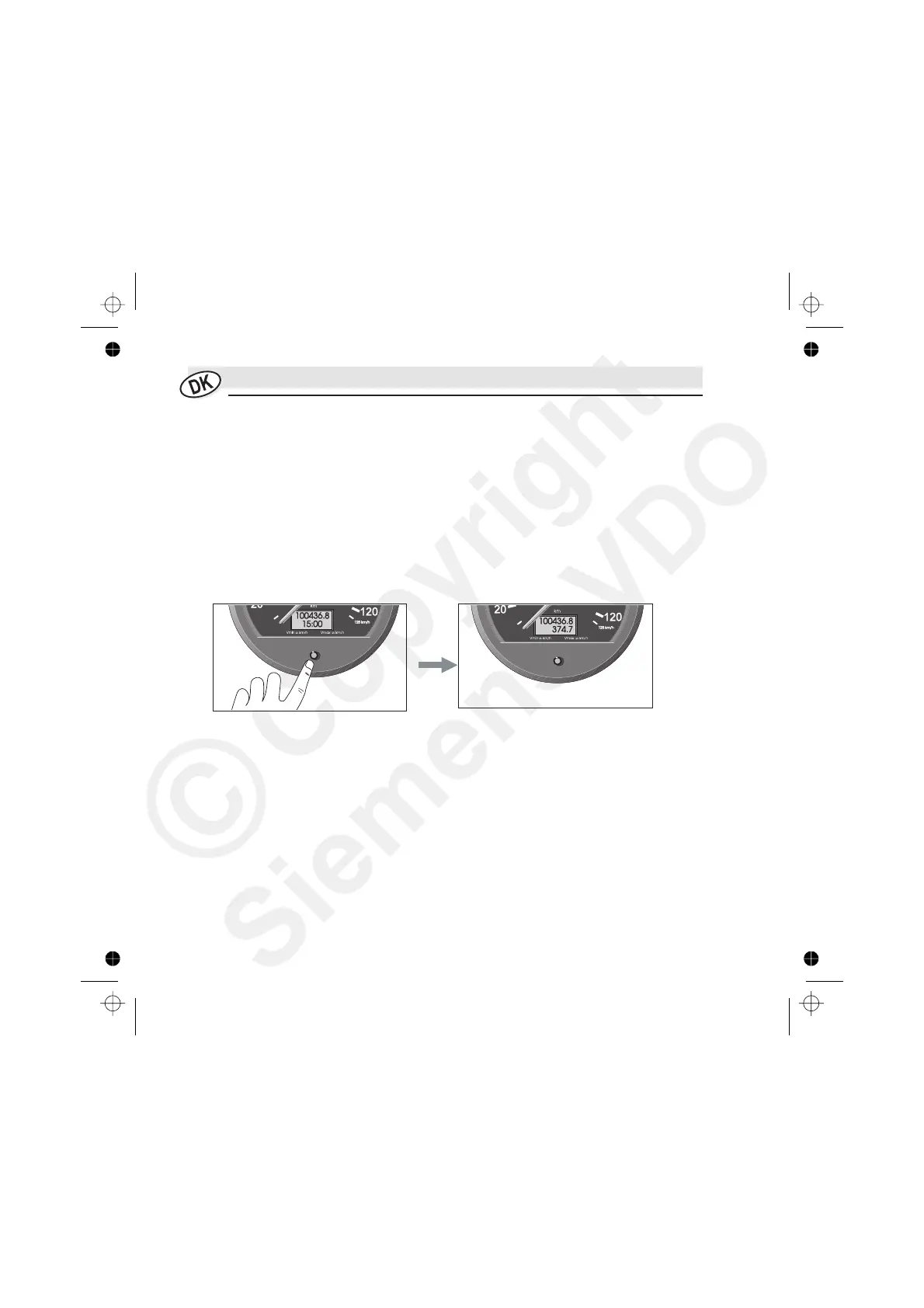 • Så snart De starter for tændingen, er E-Tacho aktiv: