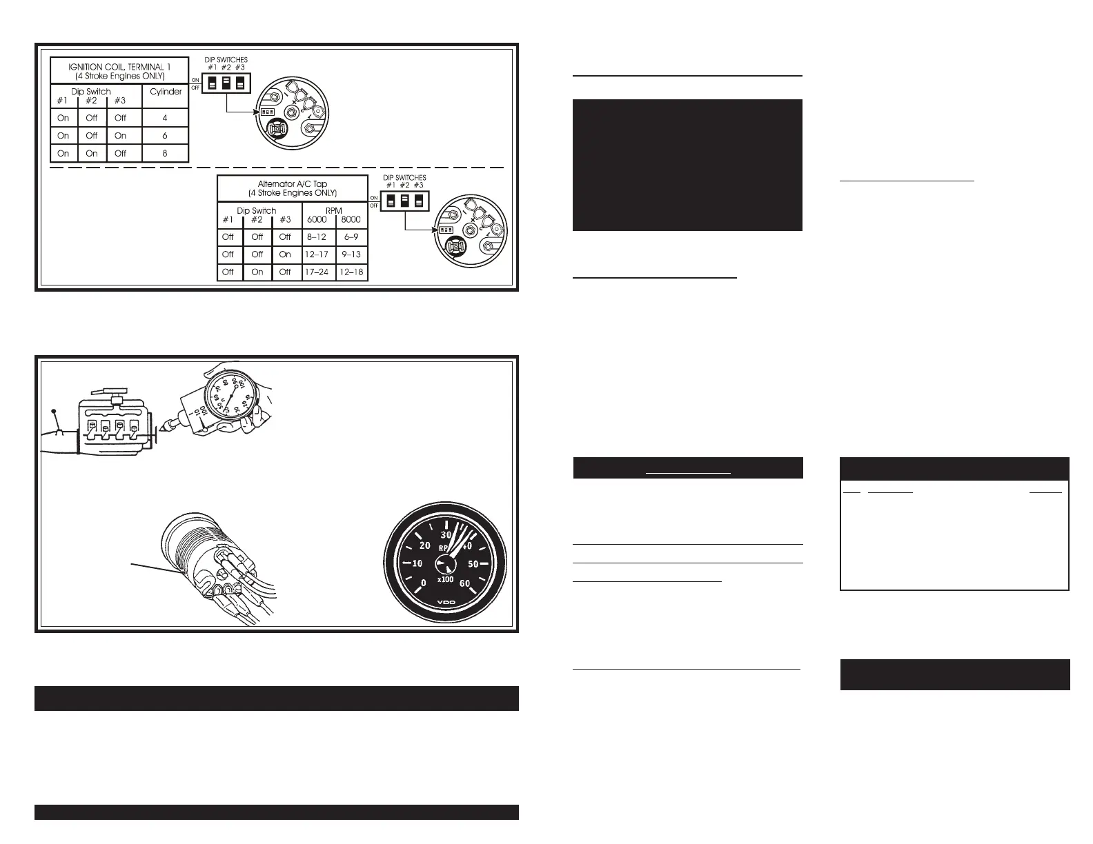 Tachometer configuration for use with ignition coil (top); alternator (bottom)