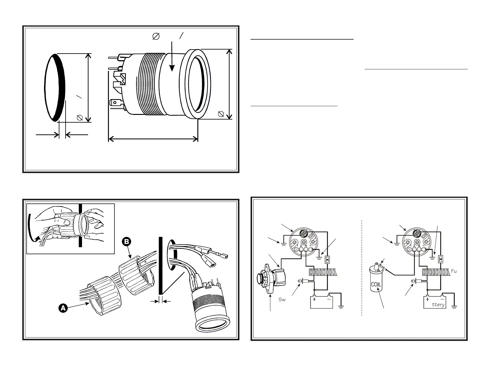 Tachometer wiring with Alternator AC Tap (left); and with Ignition Coil (right)