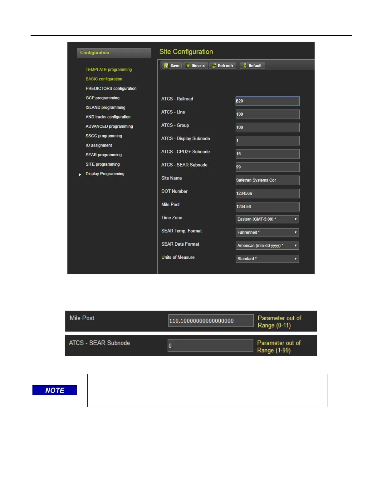 The WebUI will not accept invalid characters in text fields. If the data entered is out of range, the WebUI