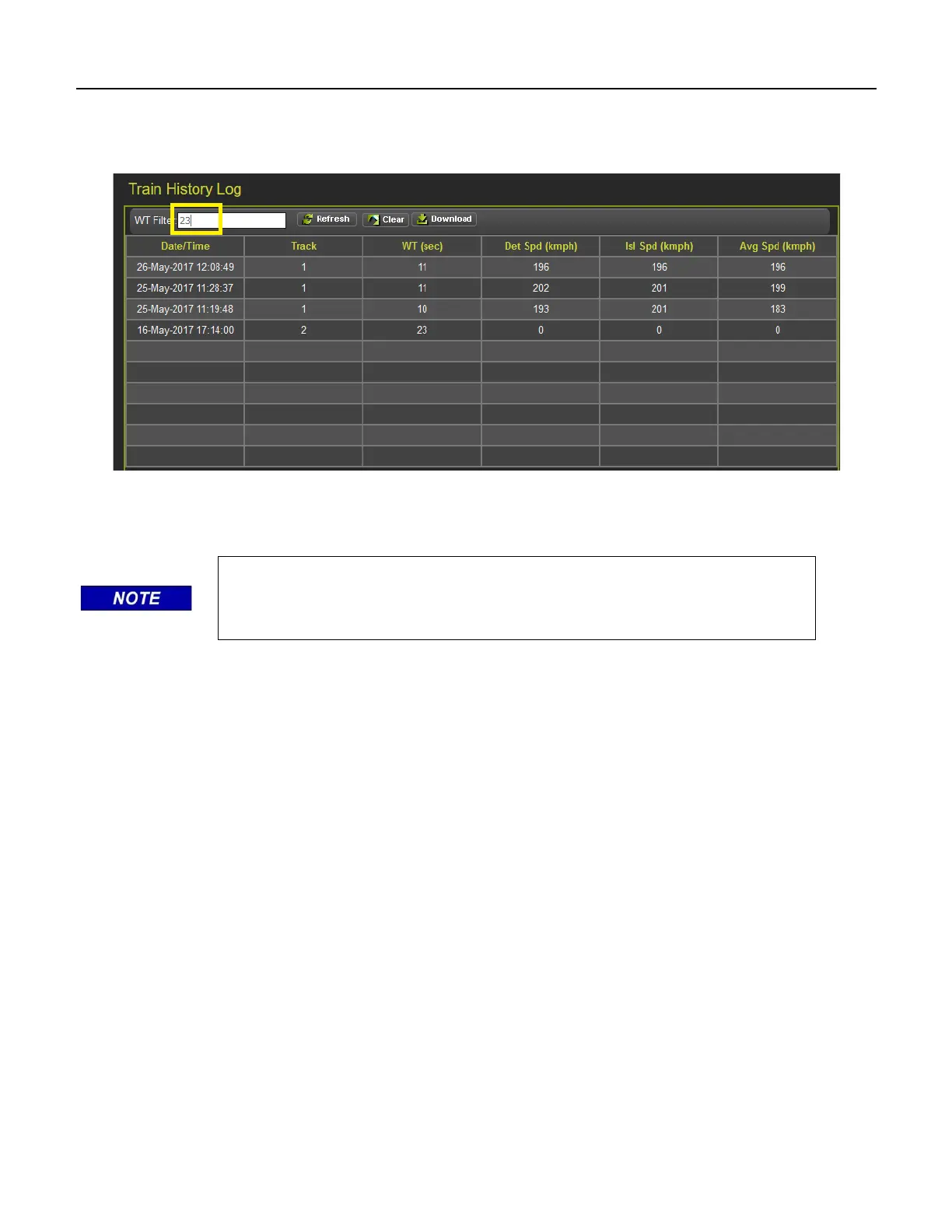 Figure 5-10 WebUI Train History Log WT Filter