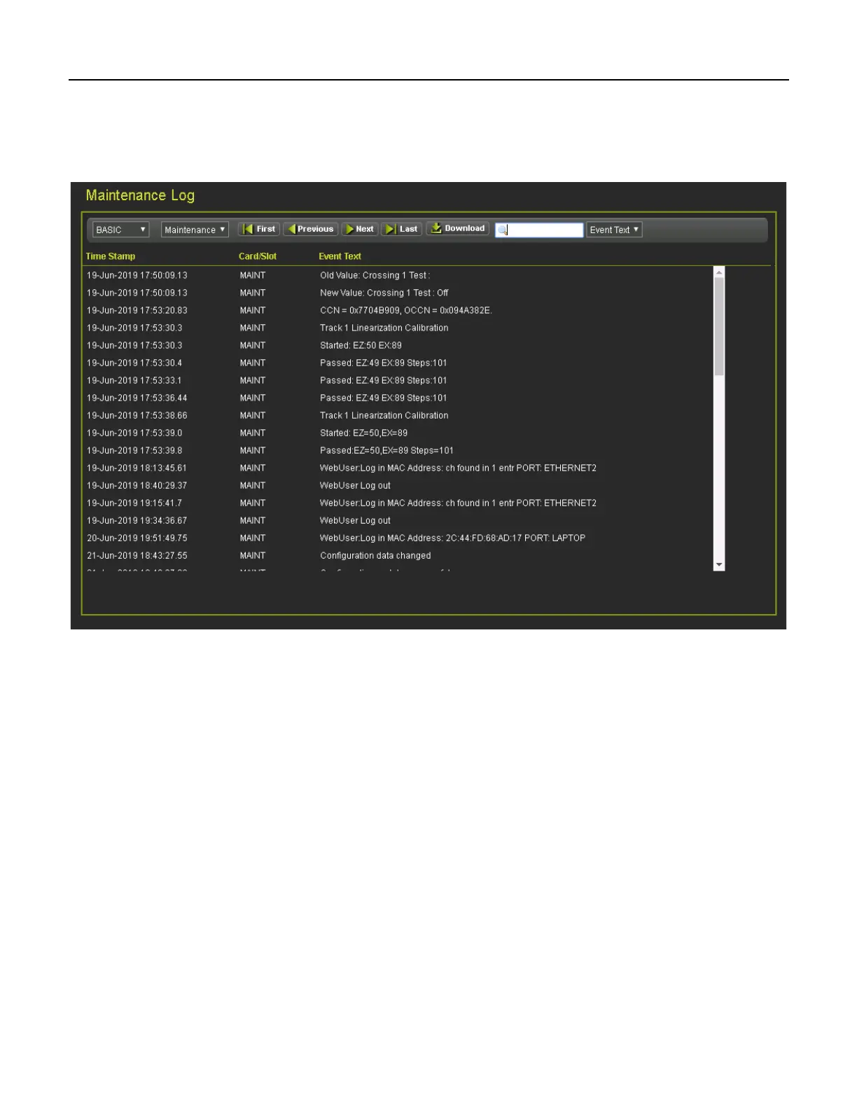 Figure 5-13 Maintenance Log WebUI