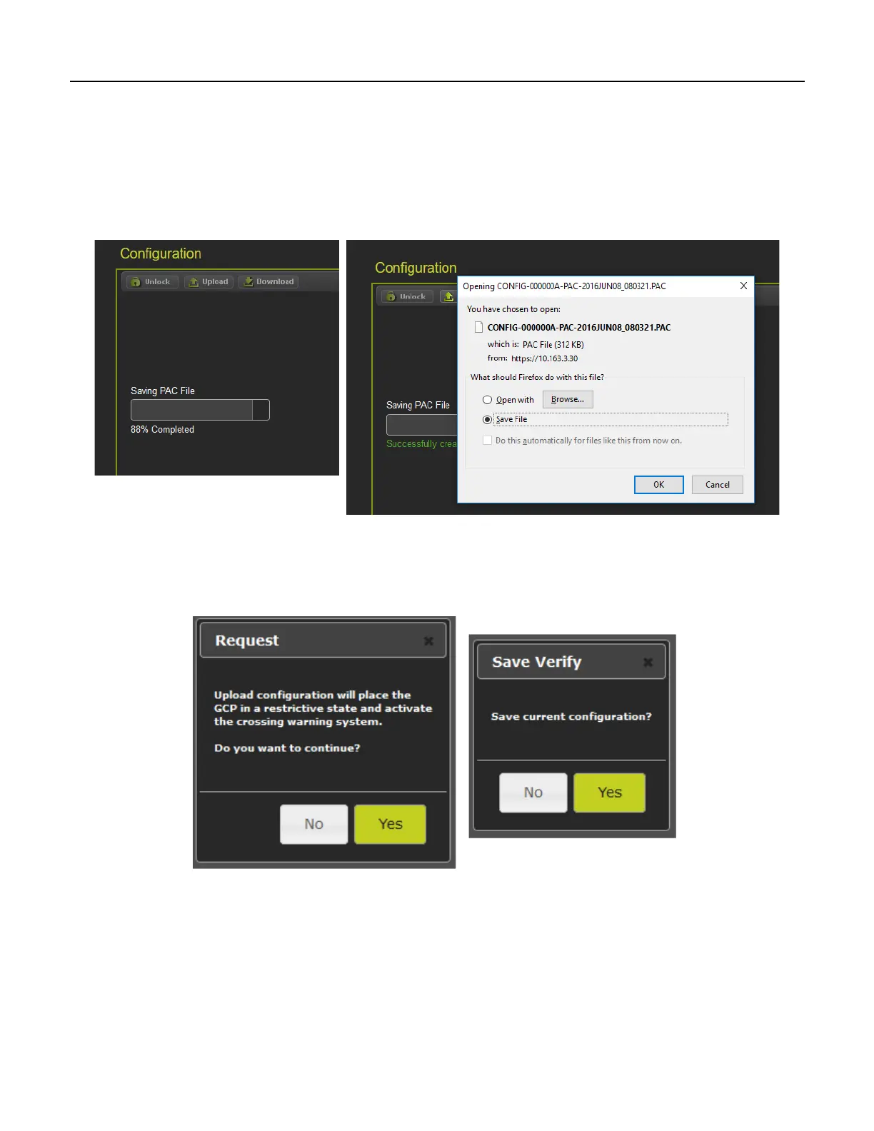 illustrated in the figure above on the left. If Yes is selected, the WebUI will ask to save the current