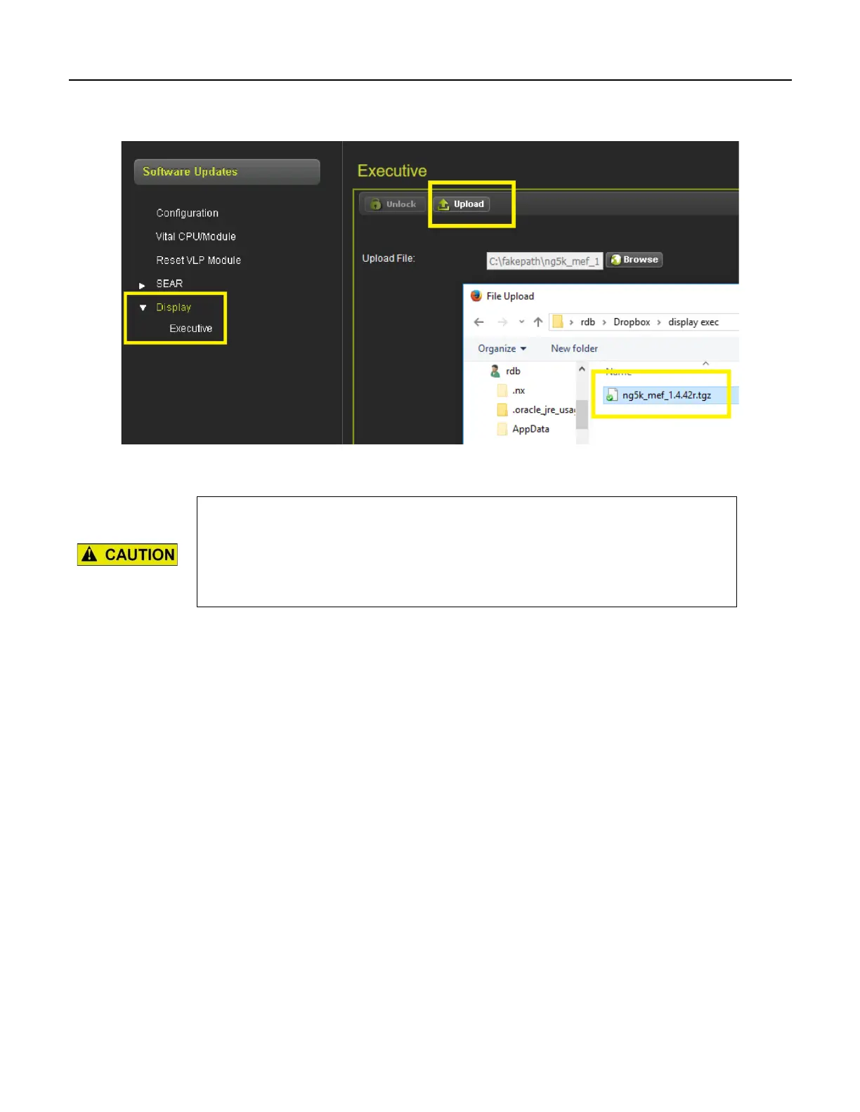 Figure 6-12 WebUI Reset Upload Display Executive
