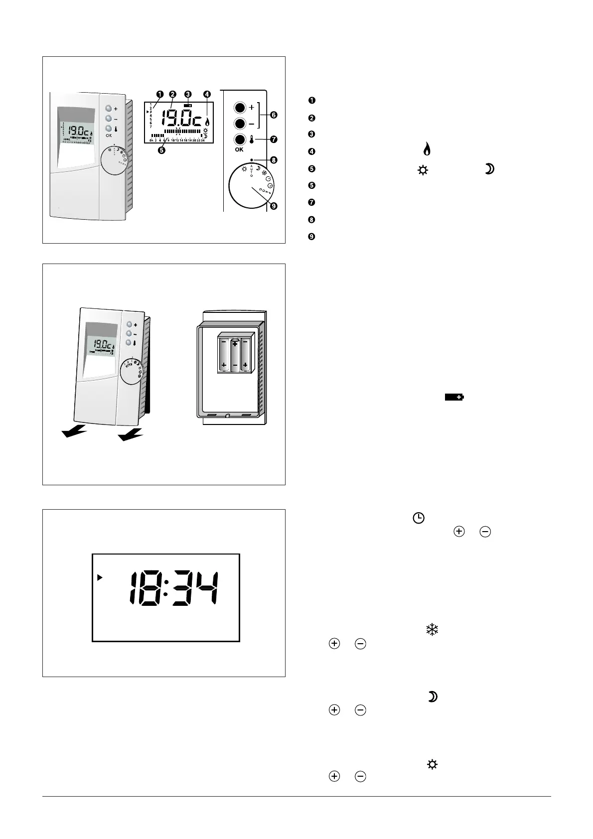 To fi t the batteries, separate the thermostat from its
