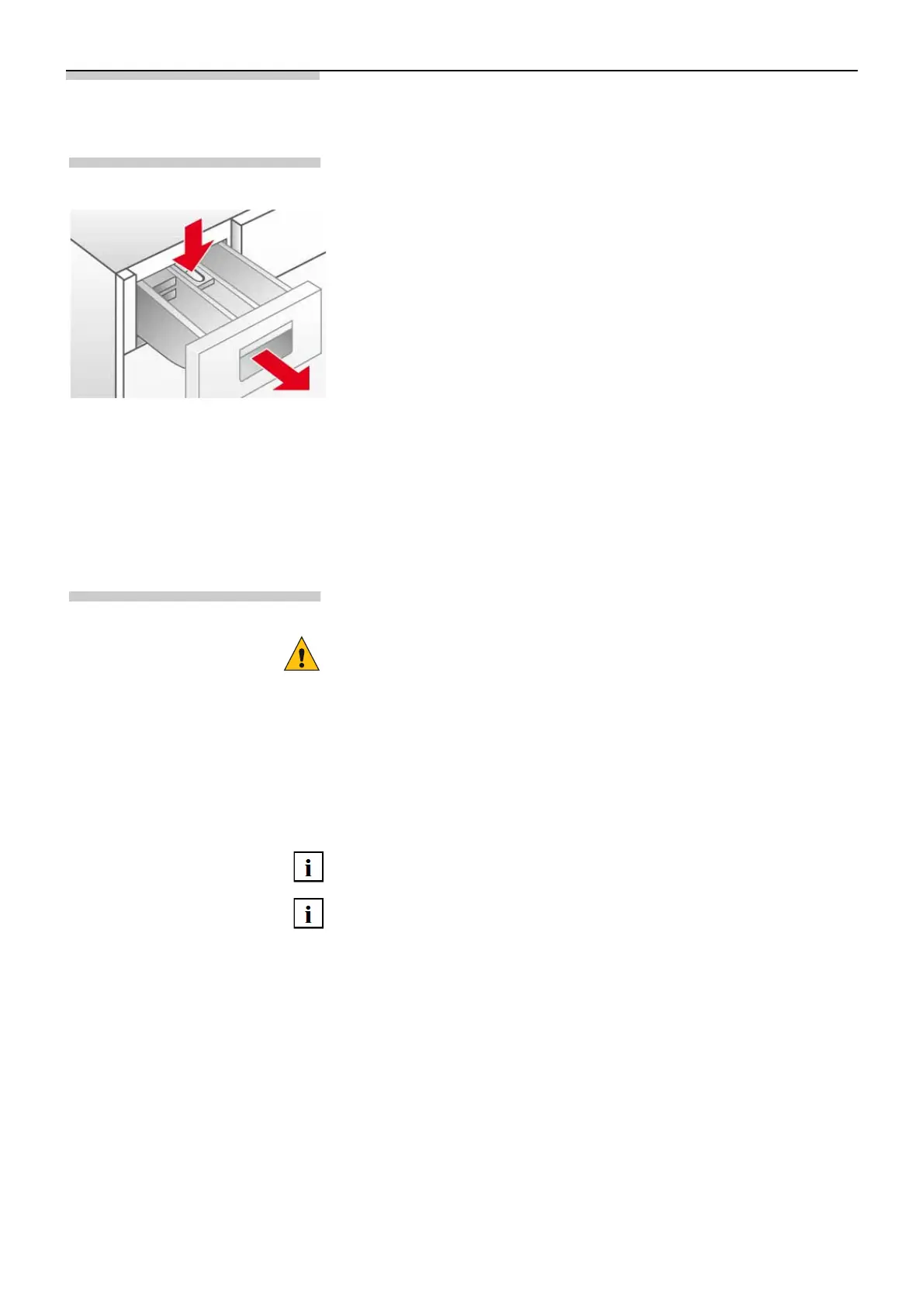 Press on the zone labelled PUSH and take out the detergent drawer.
