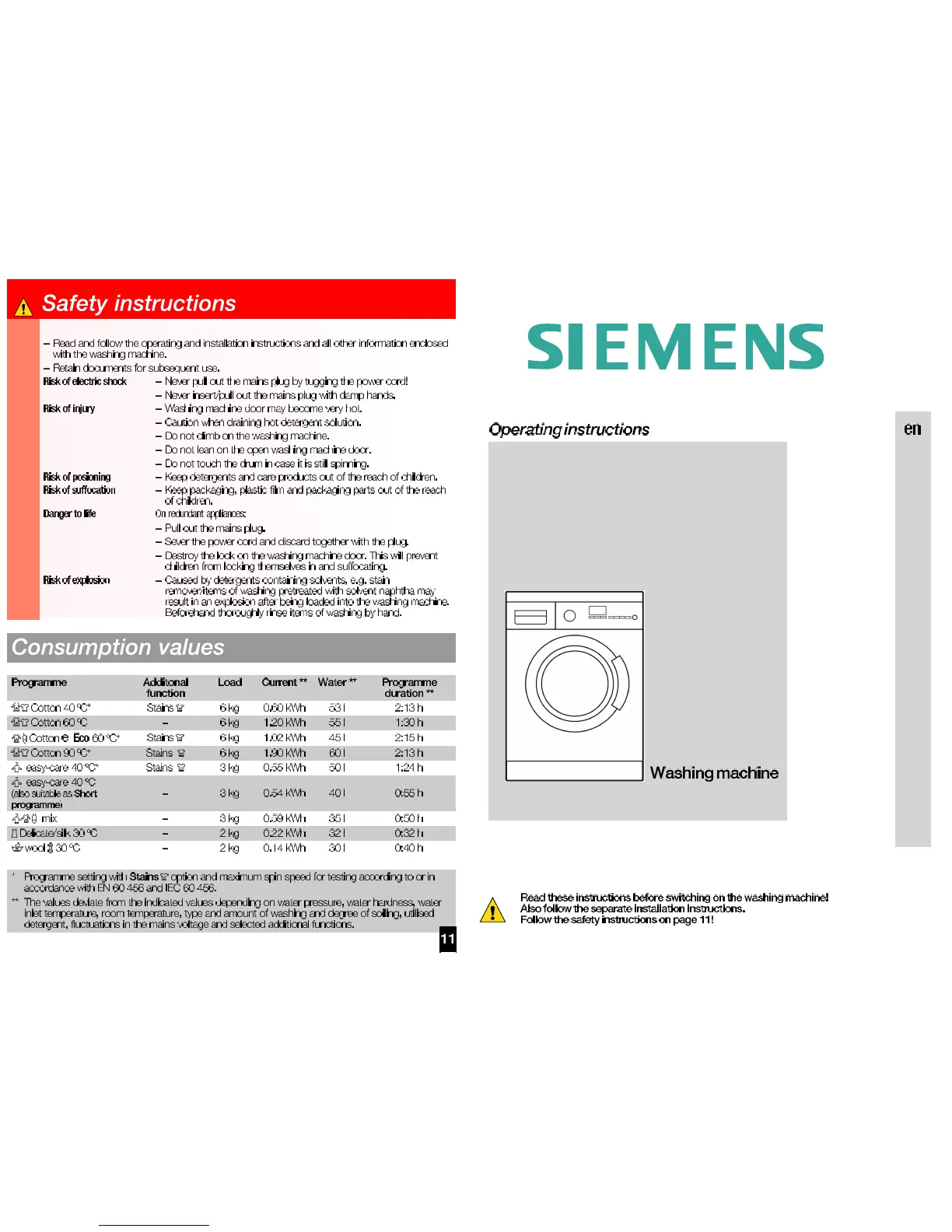 Siemens WM08E460BC - Safety Instructions and Important Warnings
