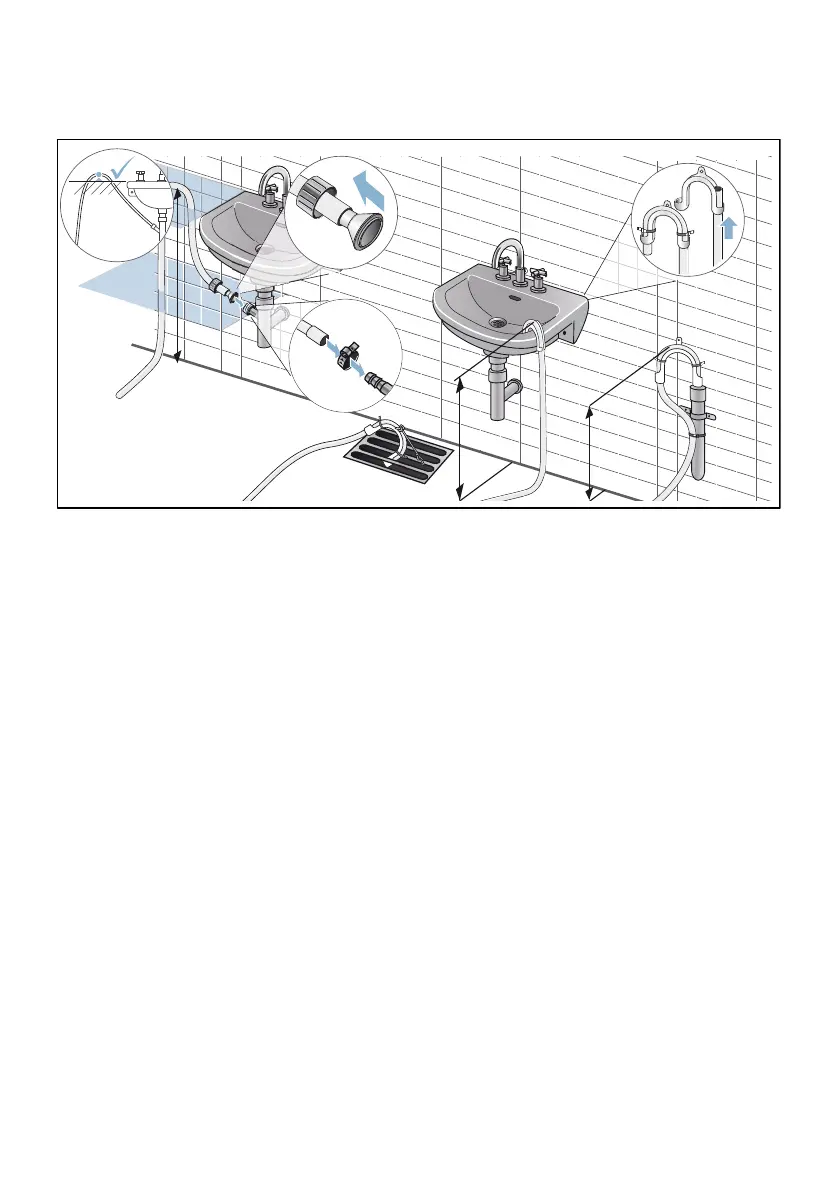 Secure the drain hose so that it cannot slip out.Do not kink the drain hose.
