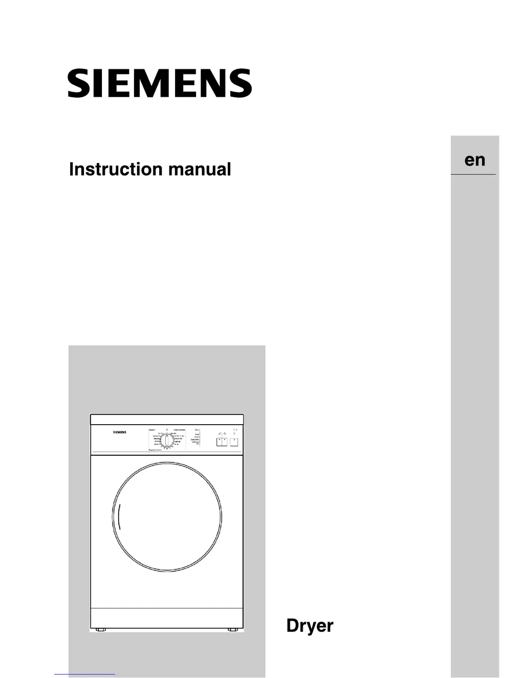 If your Siemens dryer isn't starting, there are a few potential causes. First, make sure you've pressed the Start button. Also, ensure that you have selected a drying program using the program selector. Check that the door is fully closed. Finally, if the room temperature is below 5°C, try increasing the room temperature.