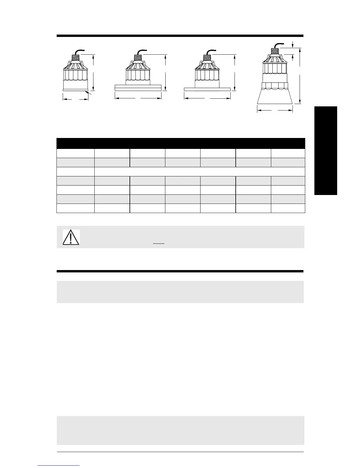 • Per le aplicazioni in liquidi, il trasduttore deve essere installato in modo che l'asse di