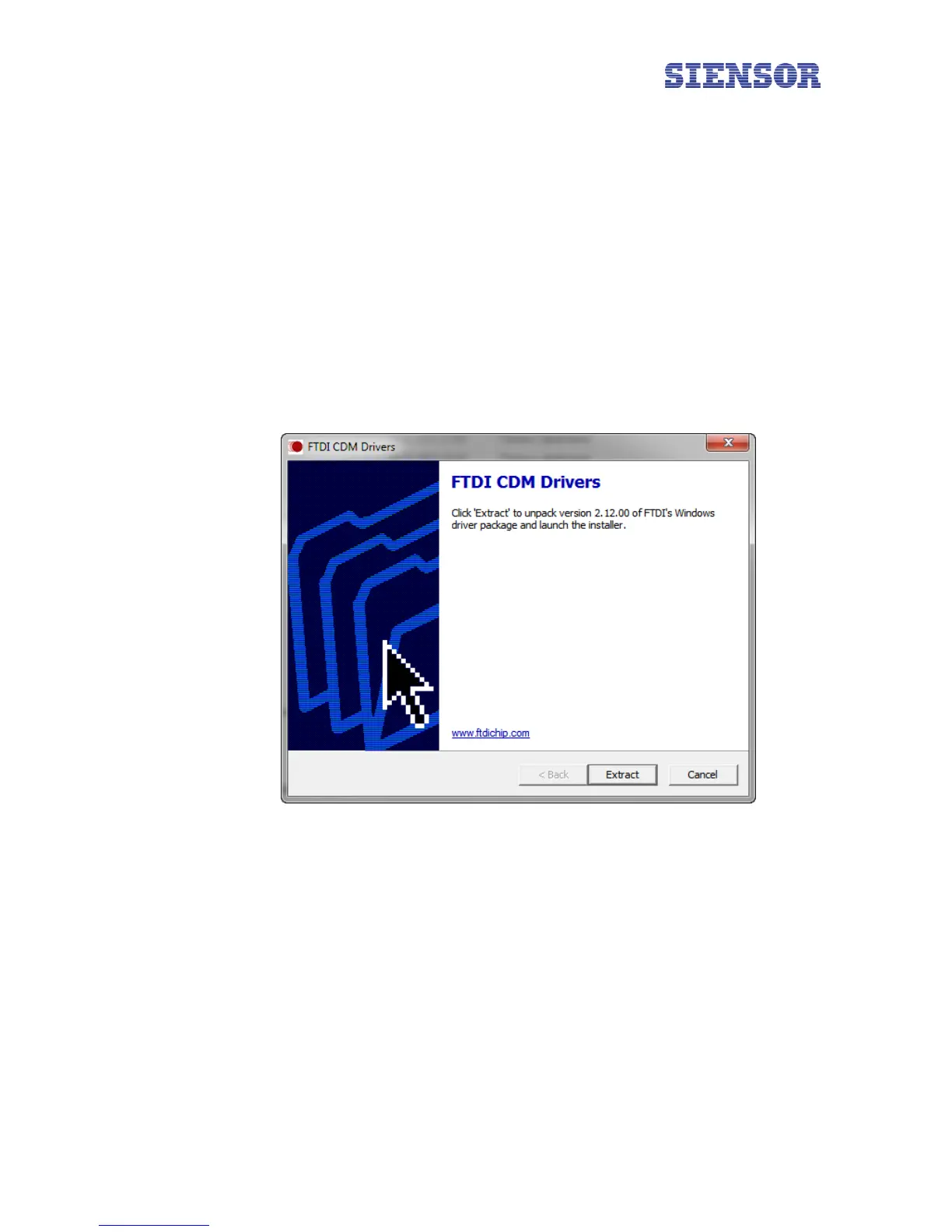 lation of the Siensor Monitor application, the driver installation wizard (the CDM v2.12.00 WHQL Certi-