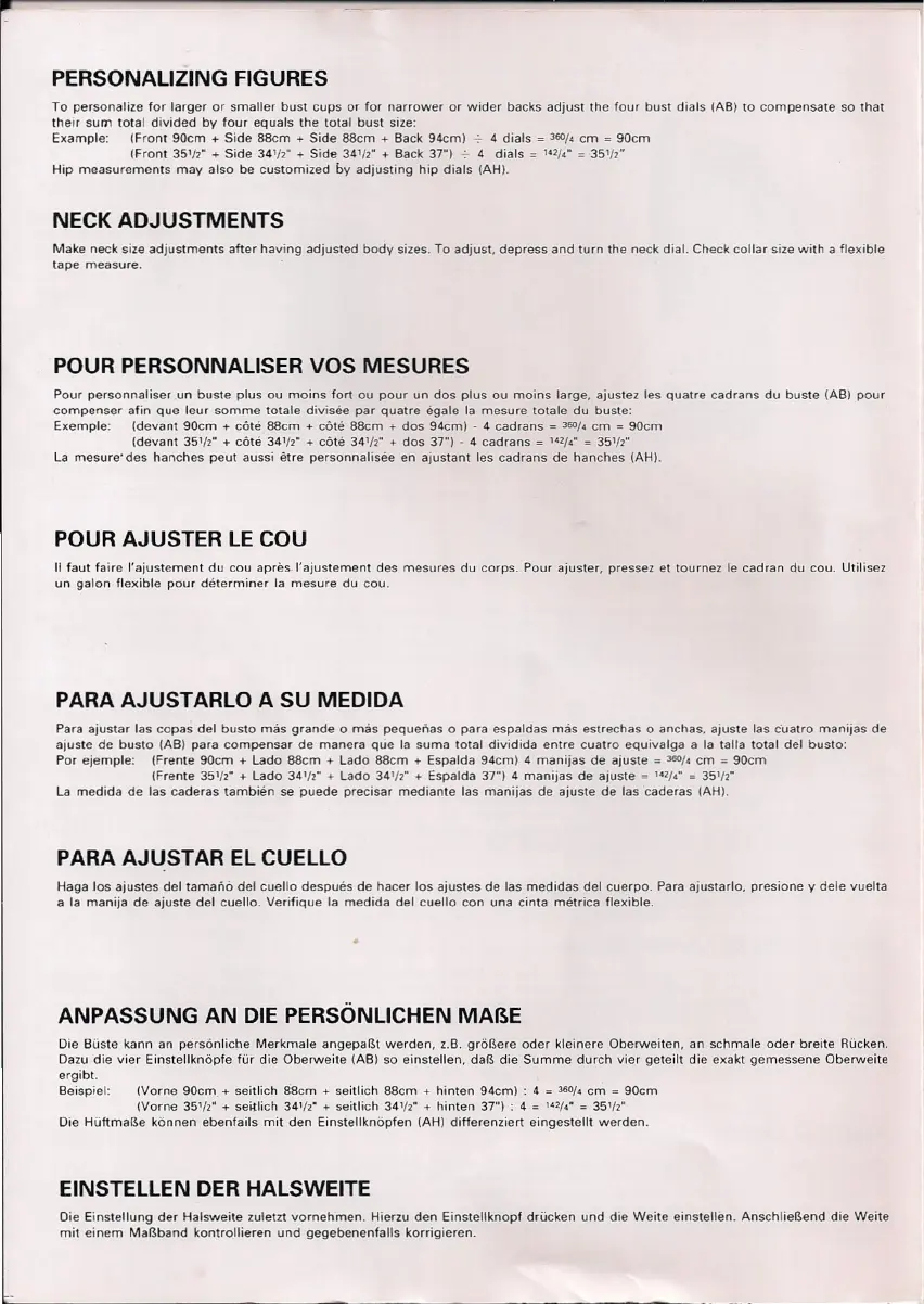 Haga .los ajustes del tamañó del cuello después de hacer los ajustes de las medidas del cuerpo. Para ajustar!o, presione