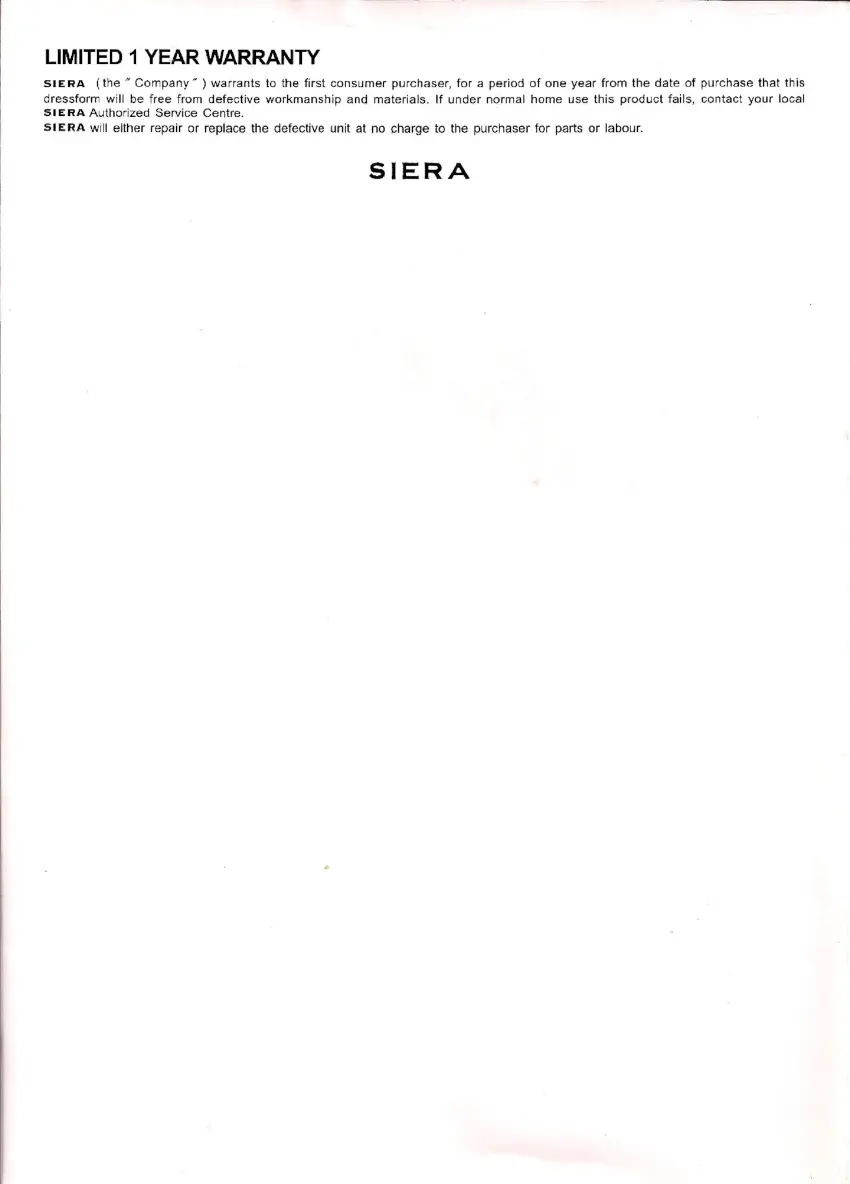Siera 150 - LIMITED 1 YEAR WARRANTY