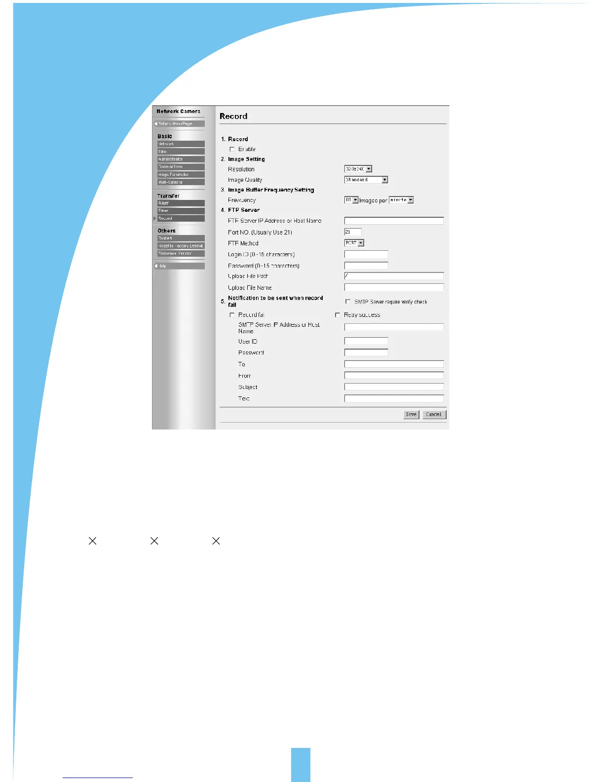 [image buffer frequency setting]: select the frequency for sending images for recording.