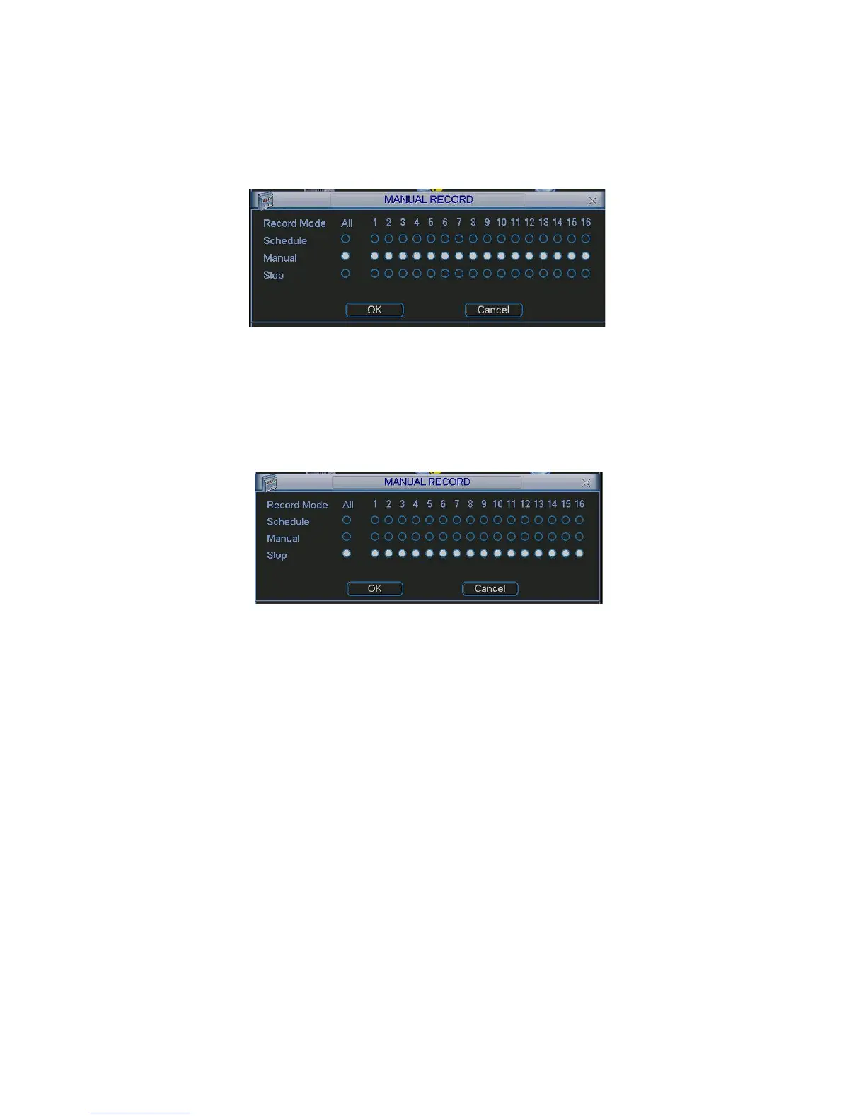 You can see indication light in front panel turns on, system begins manual record now.