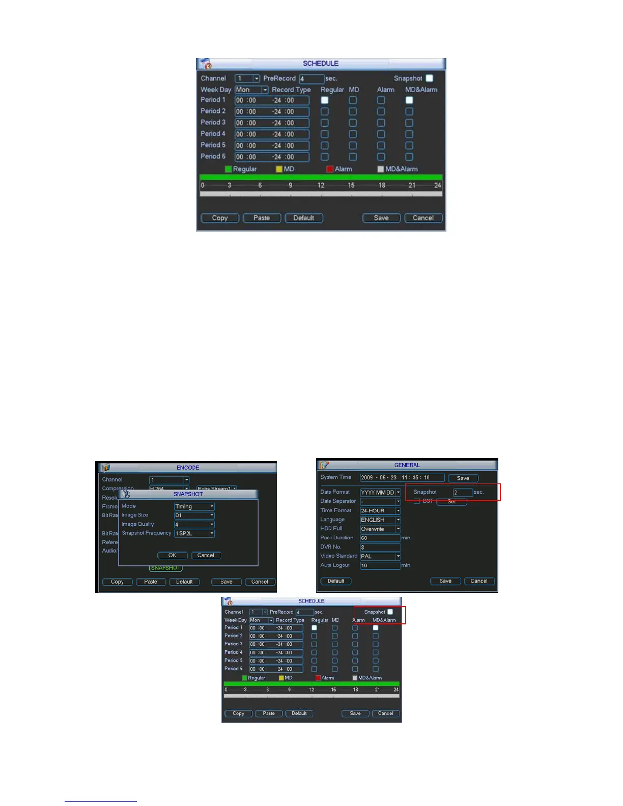 In Encode interface, click snapshot button to input snapshot mode, size, quality and