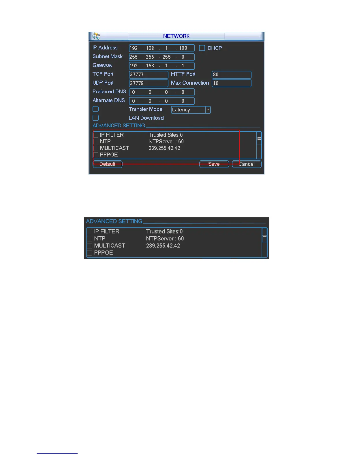 Advanced setup interface is shown as in Figure 5-10. Please draw a circle to enable