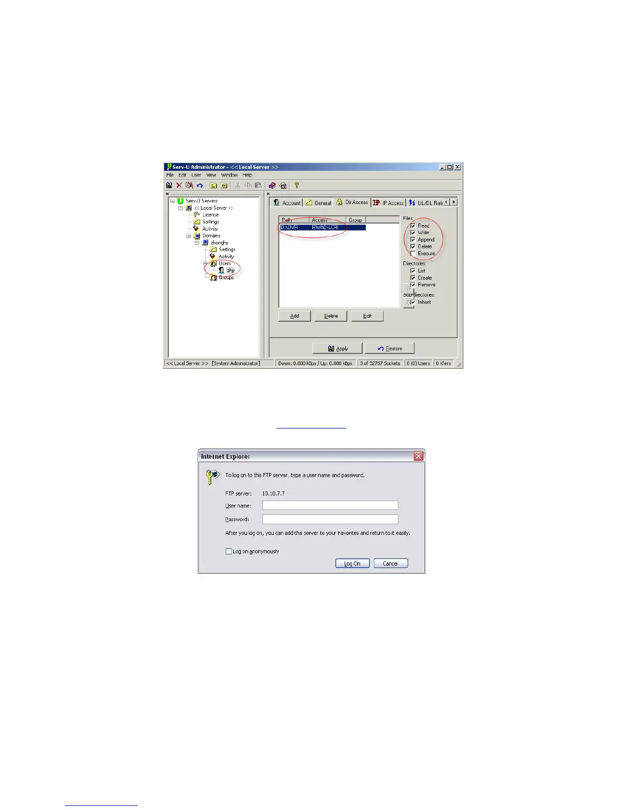 U Administator. Now you can set user password and FTP folder. Please note you need to grant