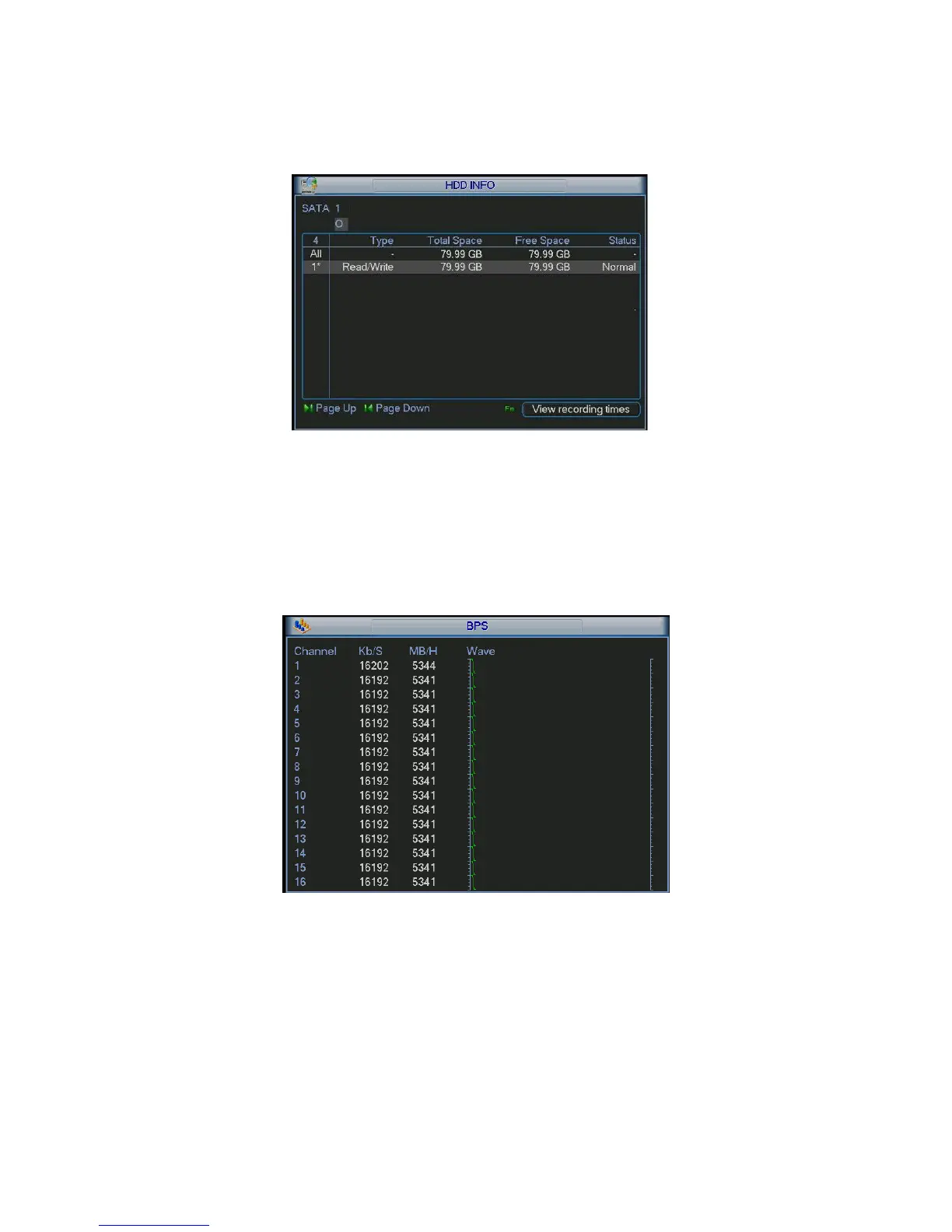 Here is for you to view current video data stream (KB/s) and occupied hard disk storage (MB/h).