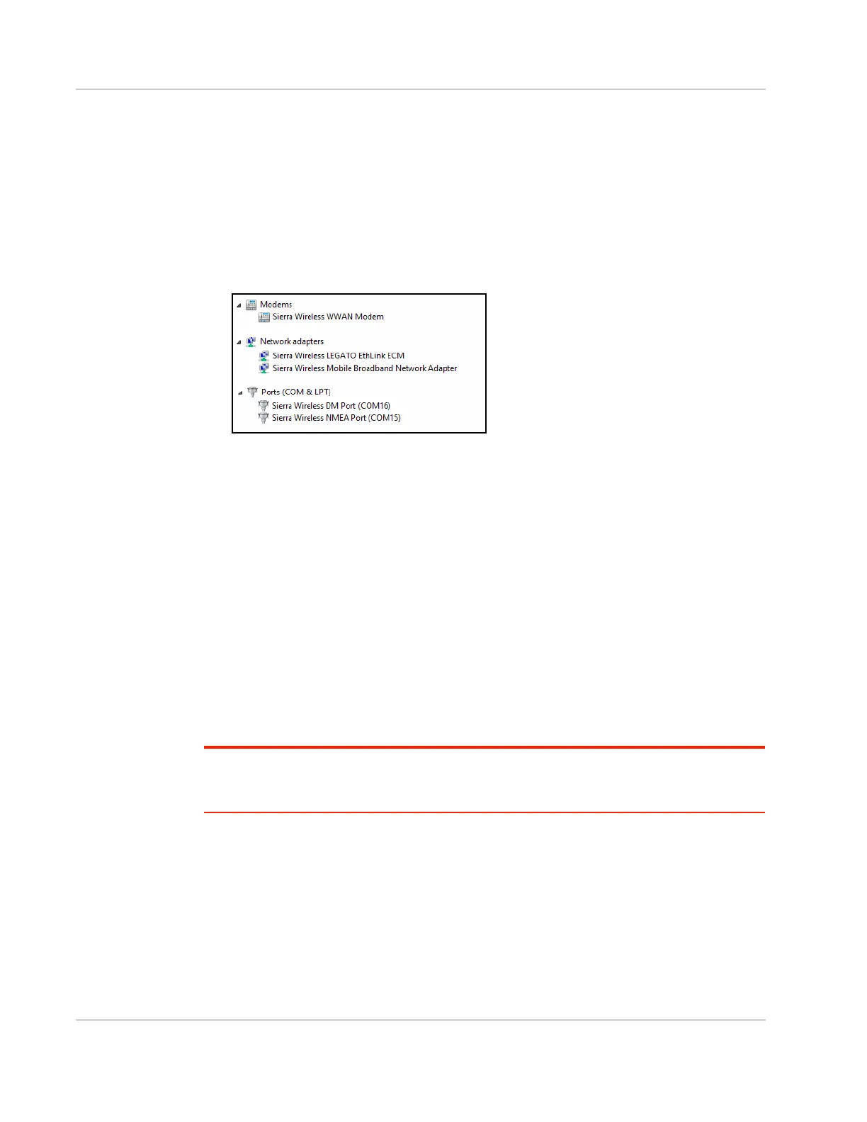 • The AT command COM port is available within the Modems > Sierra Wireless