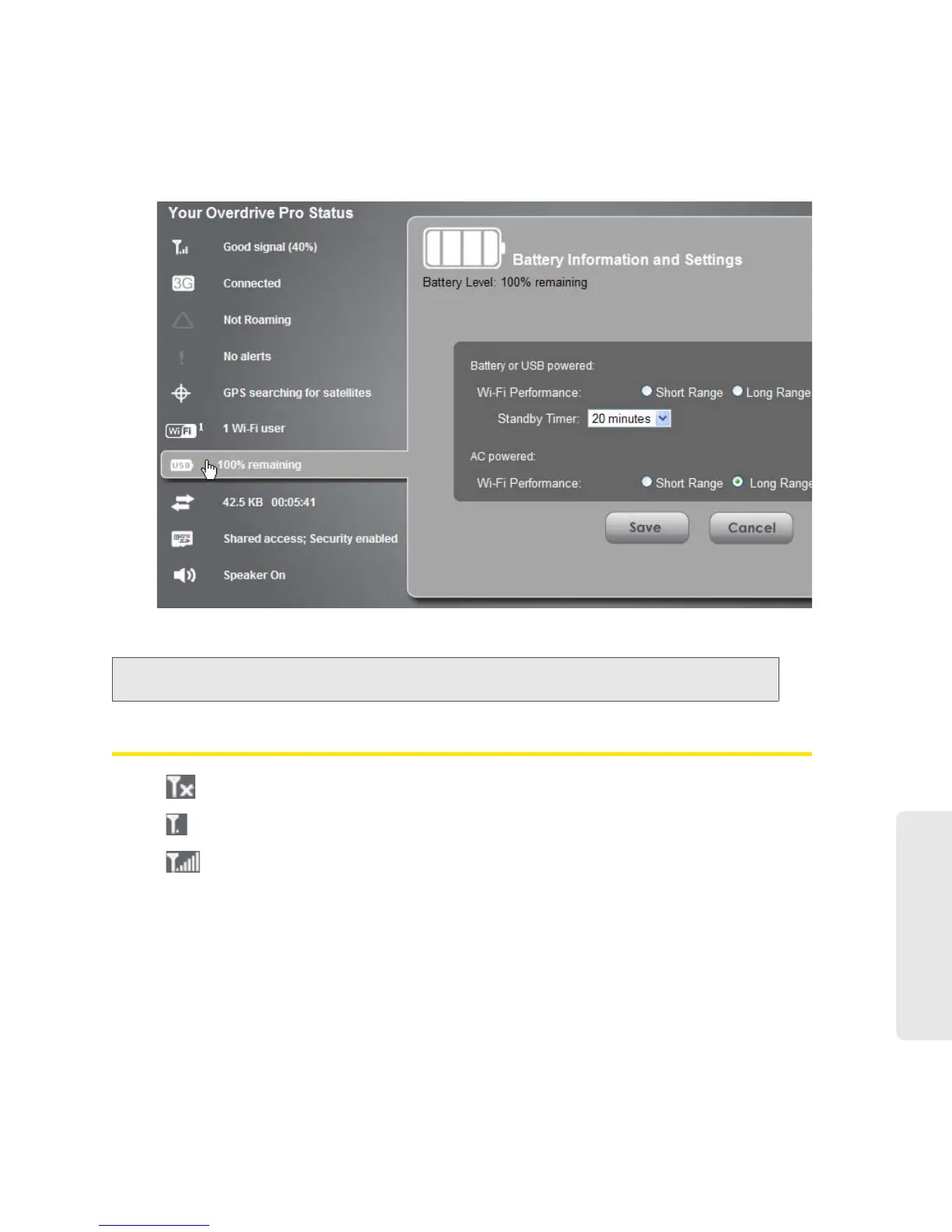 Click the signal strength icon to display the Signal Quality window. The window displays: