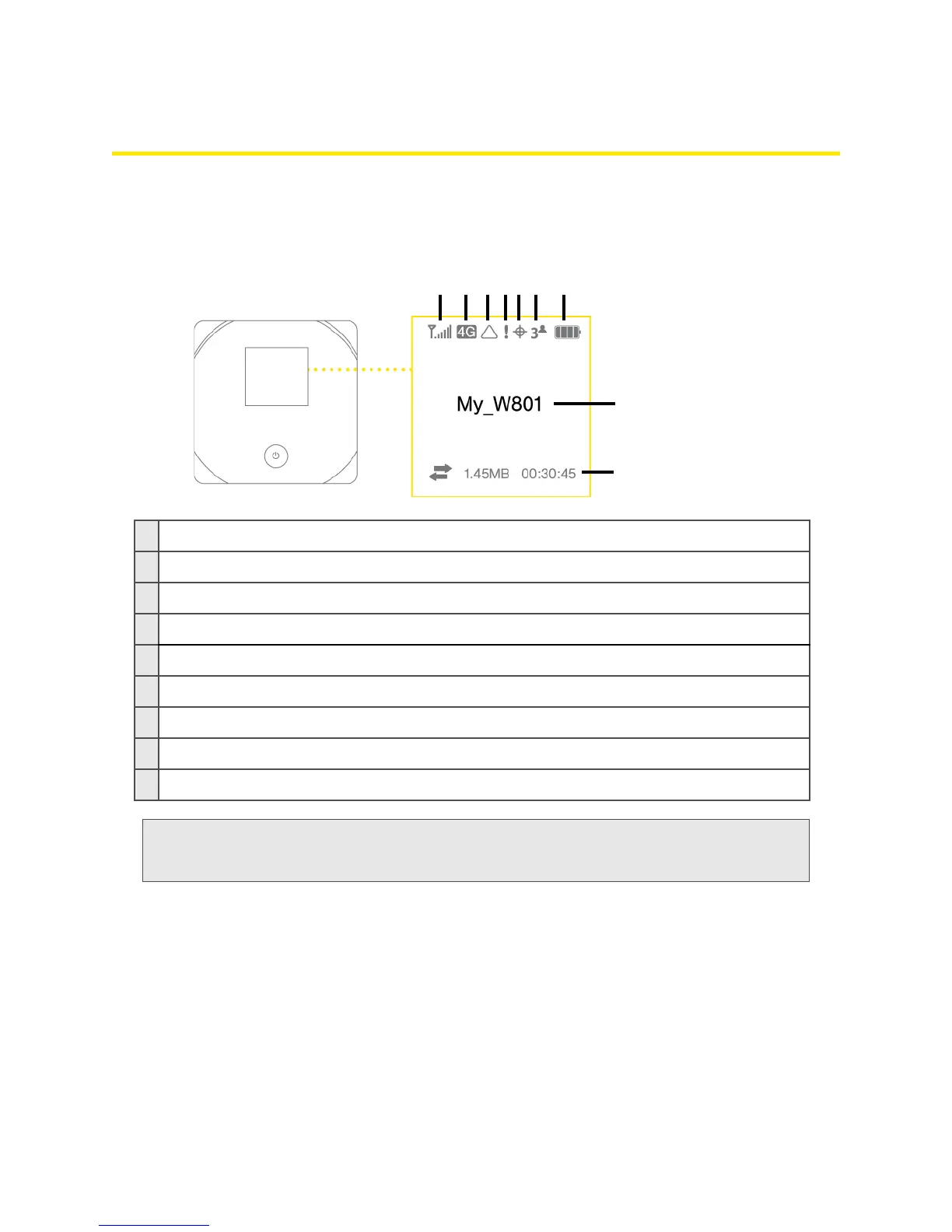 The LCD shows icons and text that reflect the status of the device and your connection.