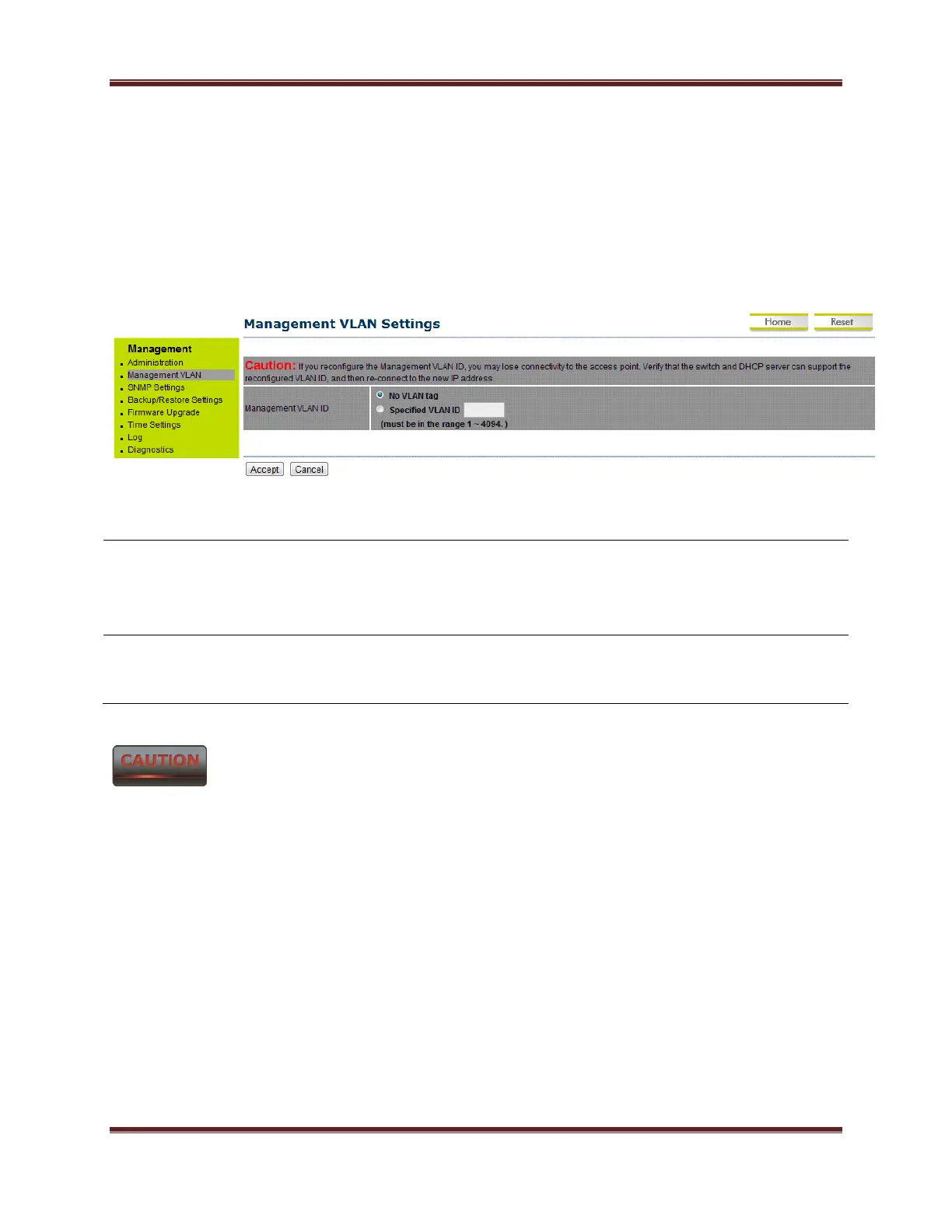 1. If you reconfigure the Management VLAN ID, you may lose connection to the SMAC5800.