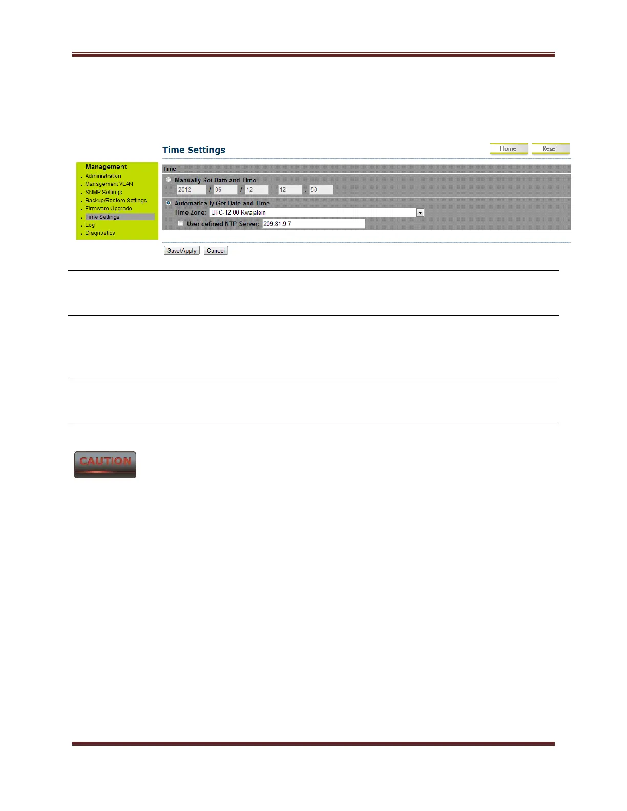 configure the time on the device. You may do this manually or by connecting to a NTP server.