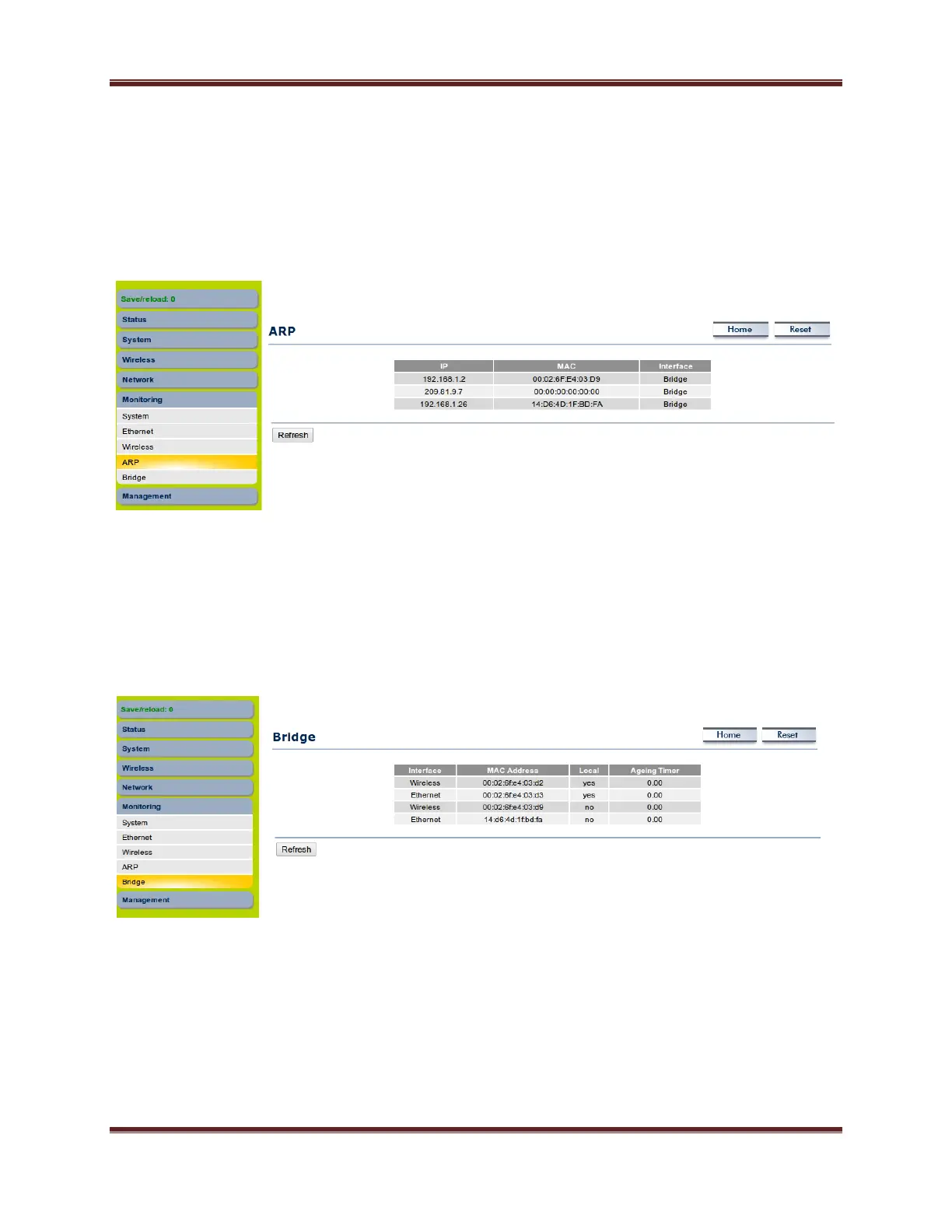 Click on the ARP link under the Monitoring menu for ARP entries learned in AP/SU.