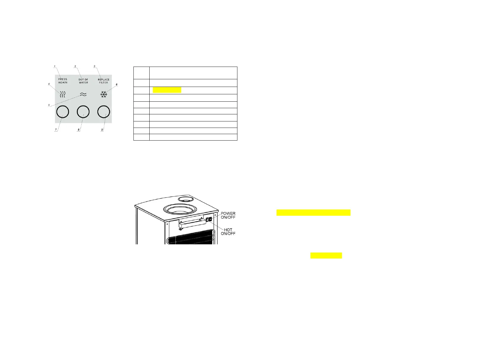 1. Veeseadme juhtnupud (nr 7, 8, 9) põlevad, ülejäänud indikaatortuled (nr 1-6) vilguvad,