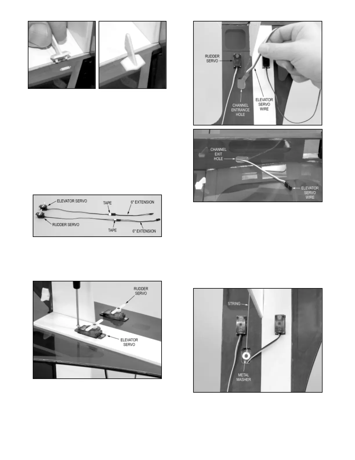 ❑21) Mount the elevator and rudder servos in the fuselage, using
