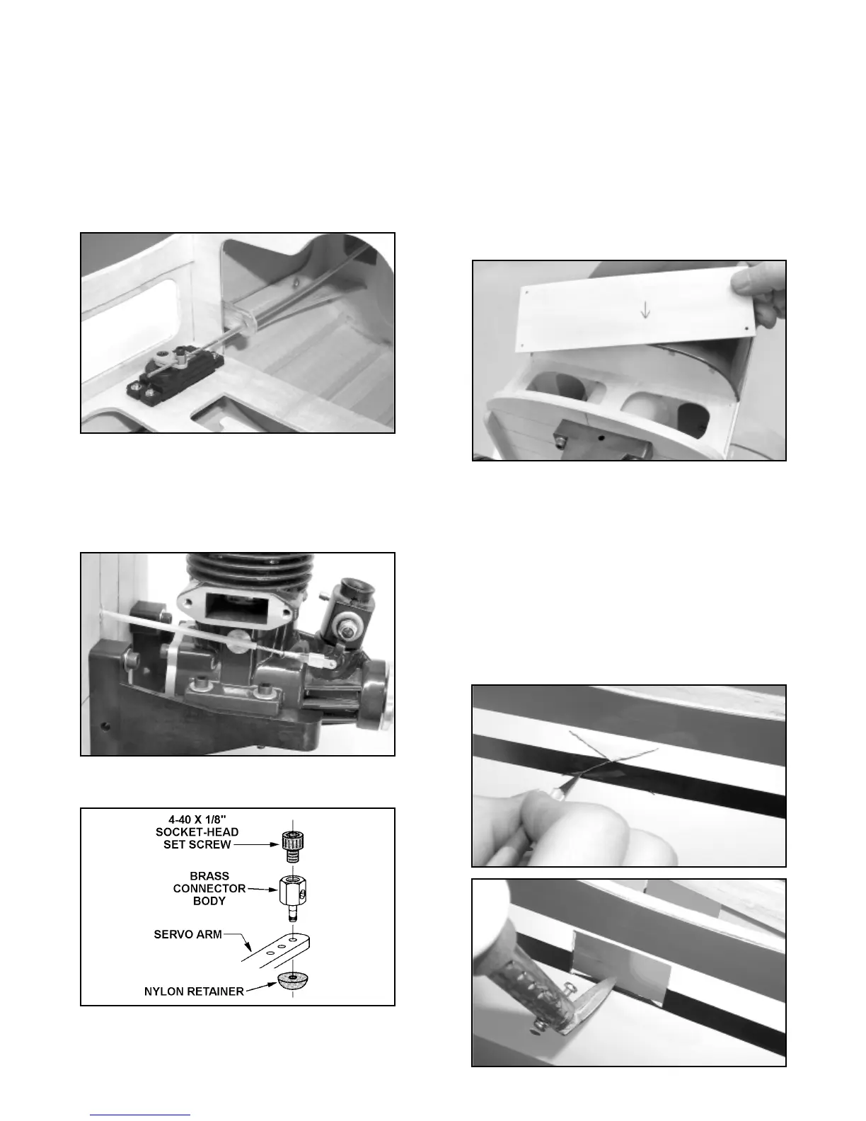 nylon tube directly at the throttle servo’s output arm. Then glue the