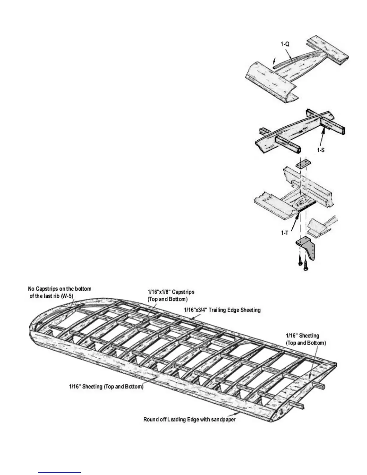 Put the 1/16"x1/8" capstrips on top of all ribs, including the aileron, except for the