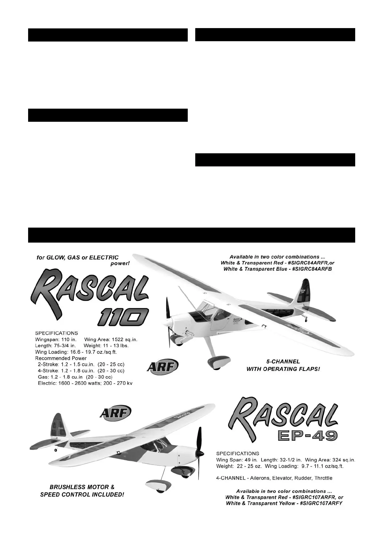 and flying the RASCAL 72 EG ARF. Should you encounter any problem