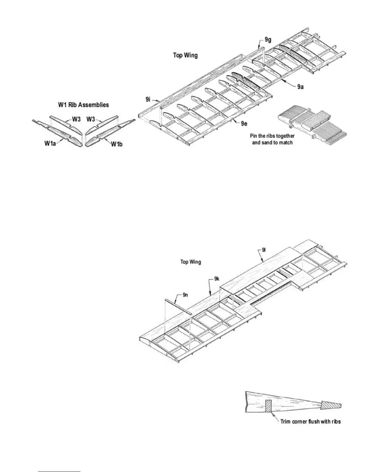 c. Glue the W1a and W1b rib assemblies