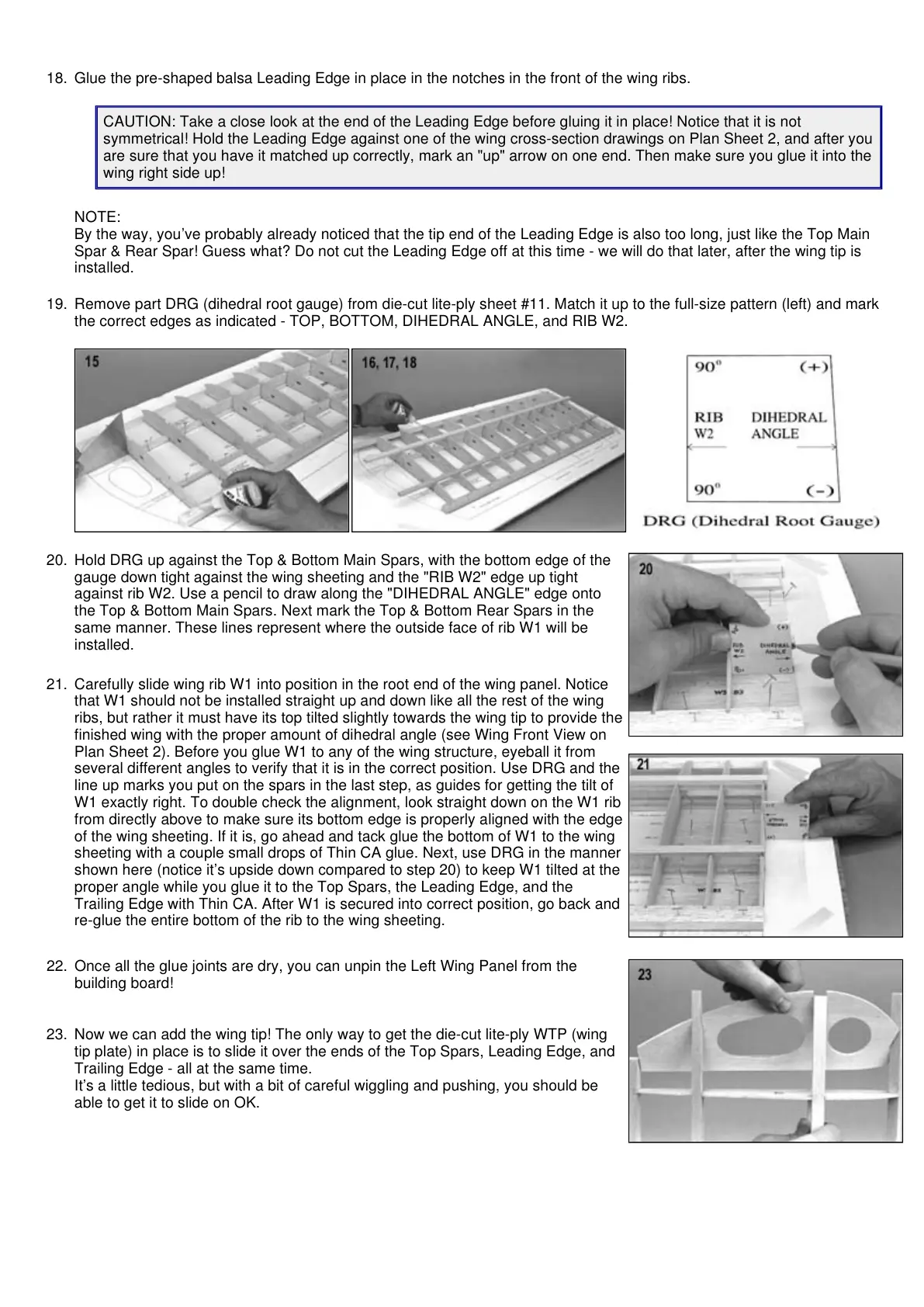 proper angle while you glue it to the Top Spars, the Leading Edge, and the
