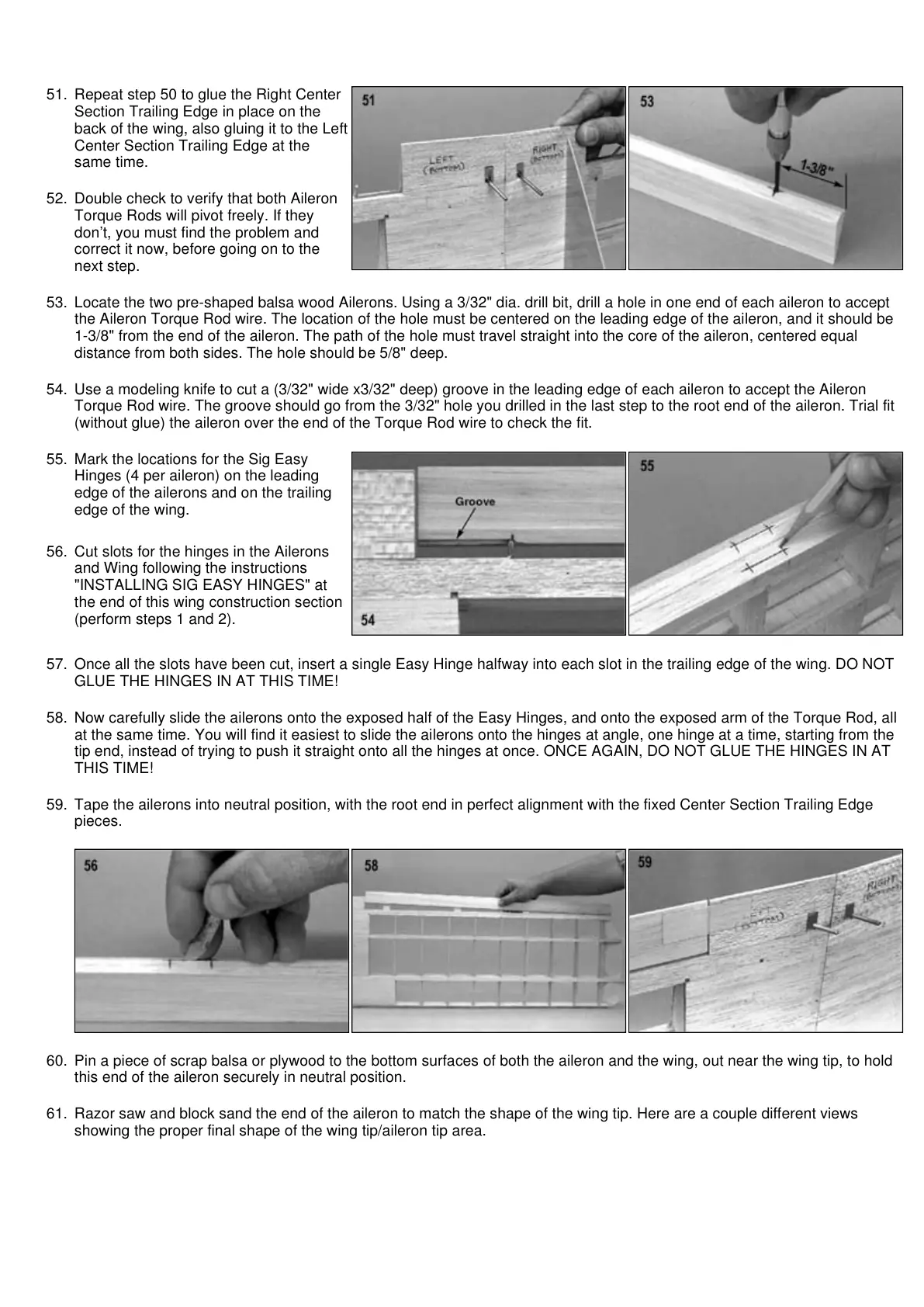 at the same time. You will find it easiest to slide the ailerons onto the hinges at angle, one hinge at a time, starting from the